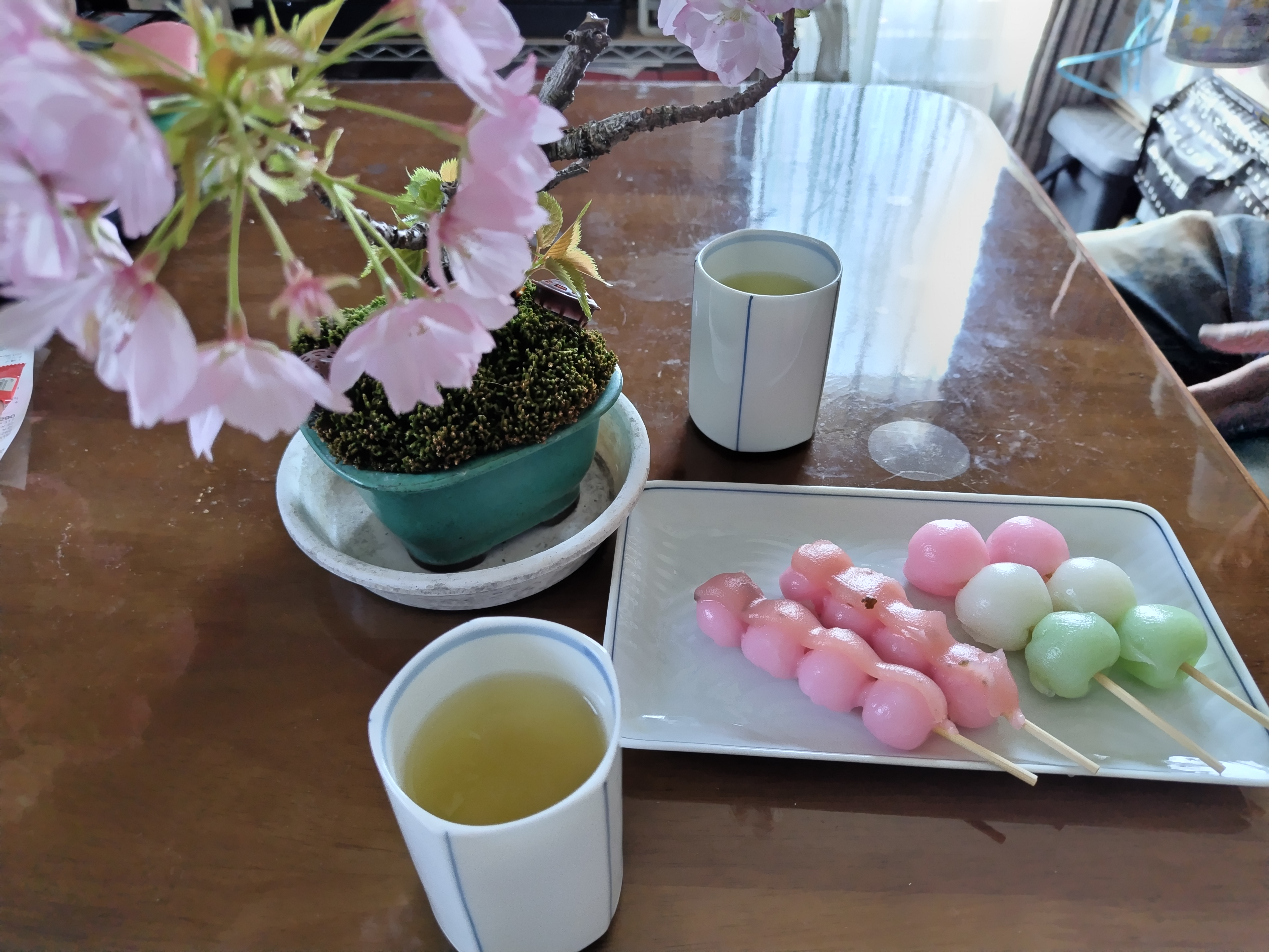 家で、盆栽の桜でお花見に切り替えw