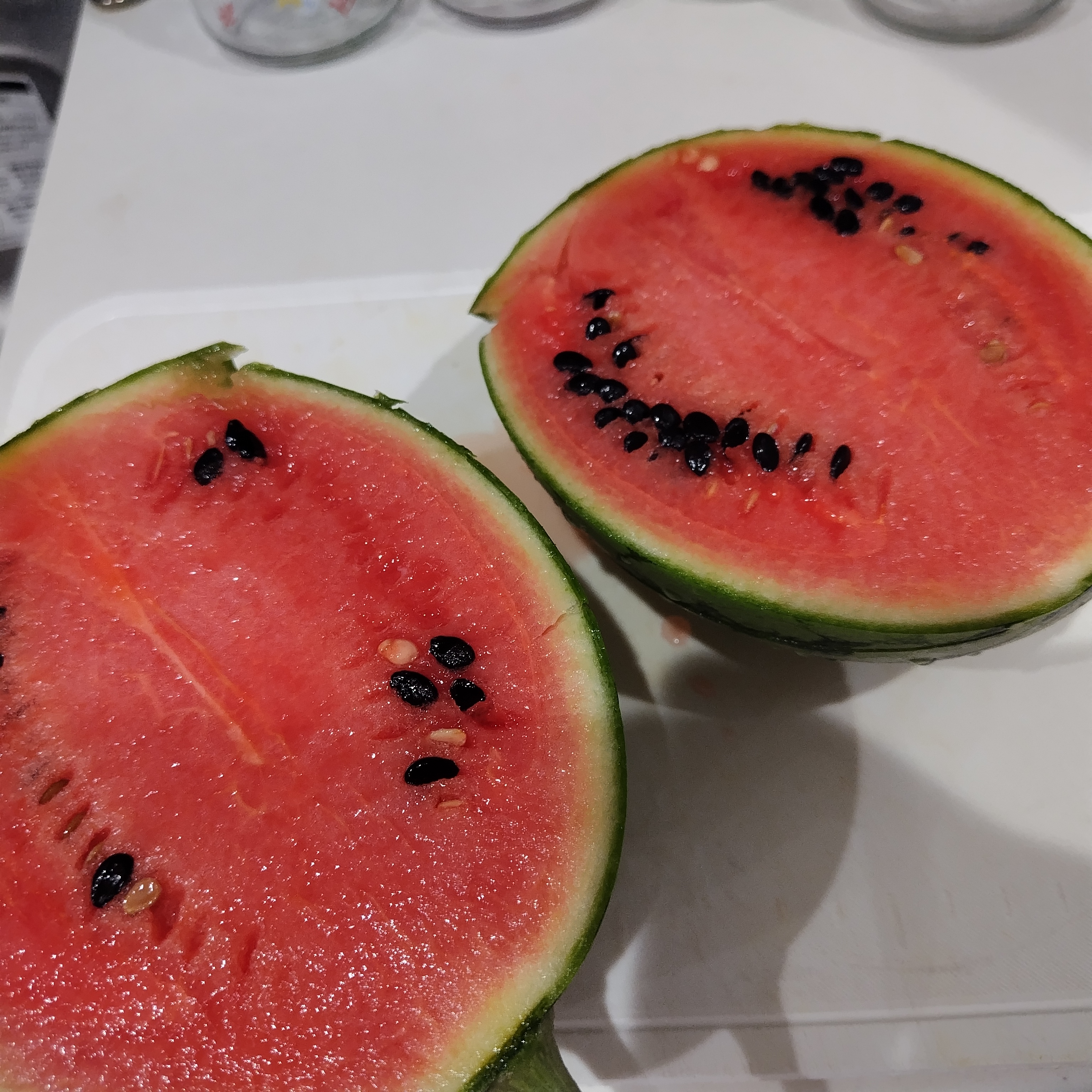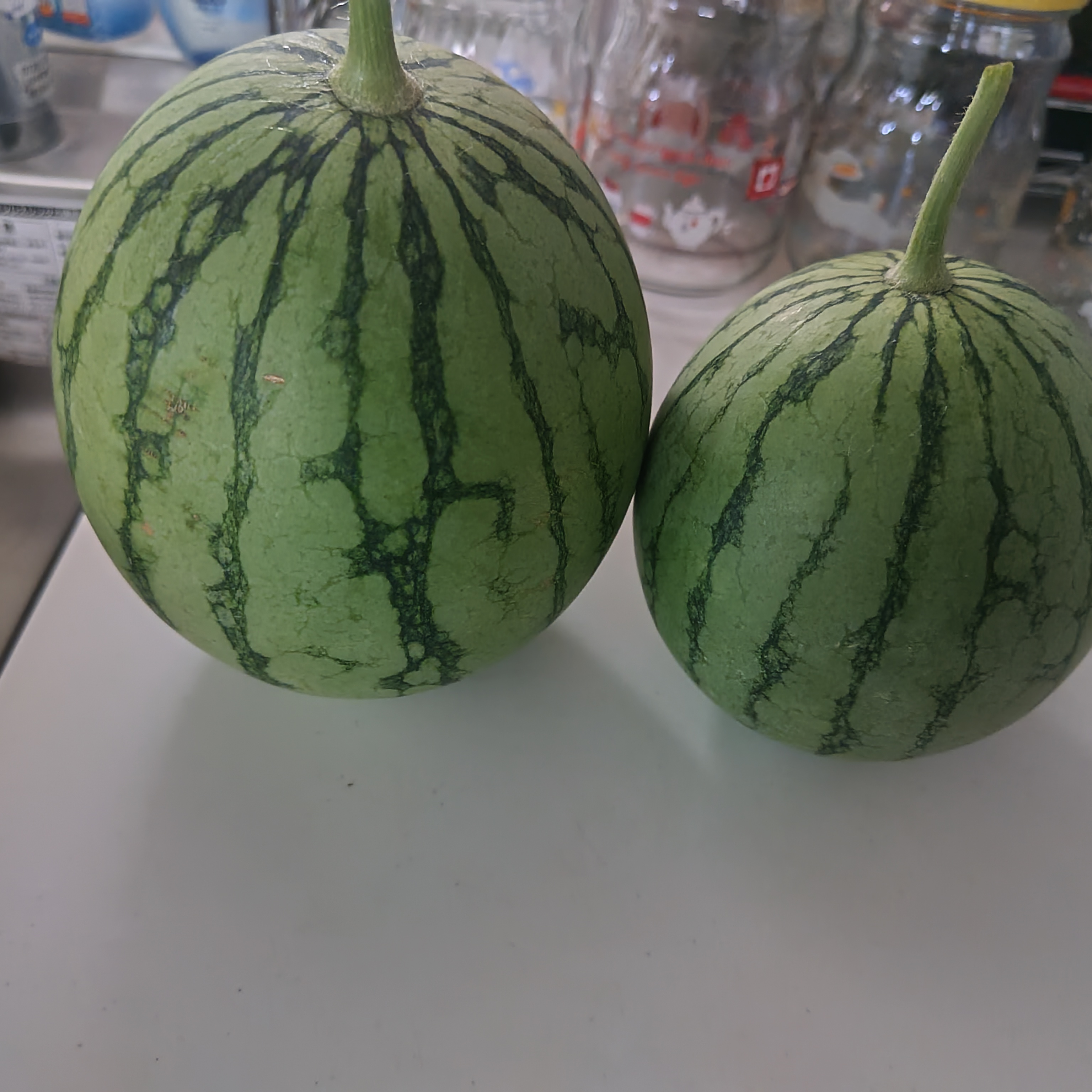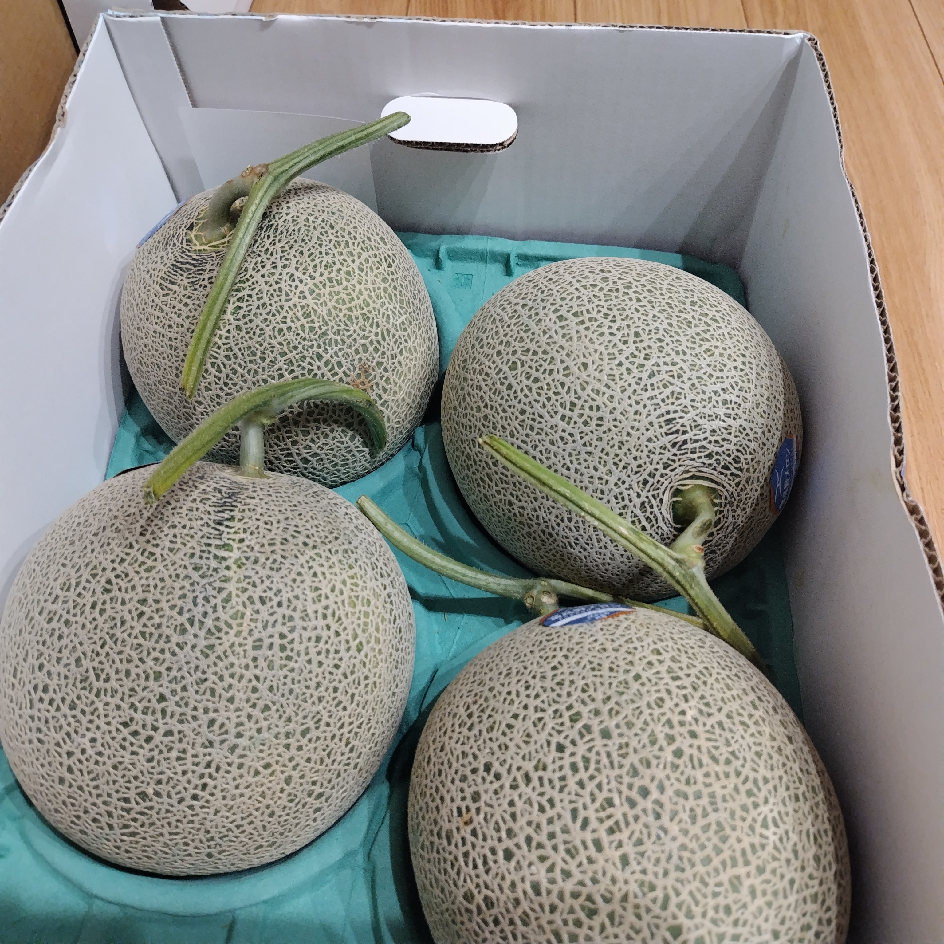 今日は孫のみなと君の一才の誕生日! だからというわけではないけど 北海道からメロンが届きました。 早く食べたいなー そしてベランダ菜園の小玉スイカ、収穫しました! 今年は2個できたせいか、去年より小さく、 1.1kgと578gでした。  それでもしっかり熟していて、甘かった♪  ベランダでこれだけ採れれば十分よね!