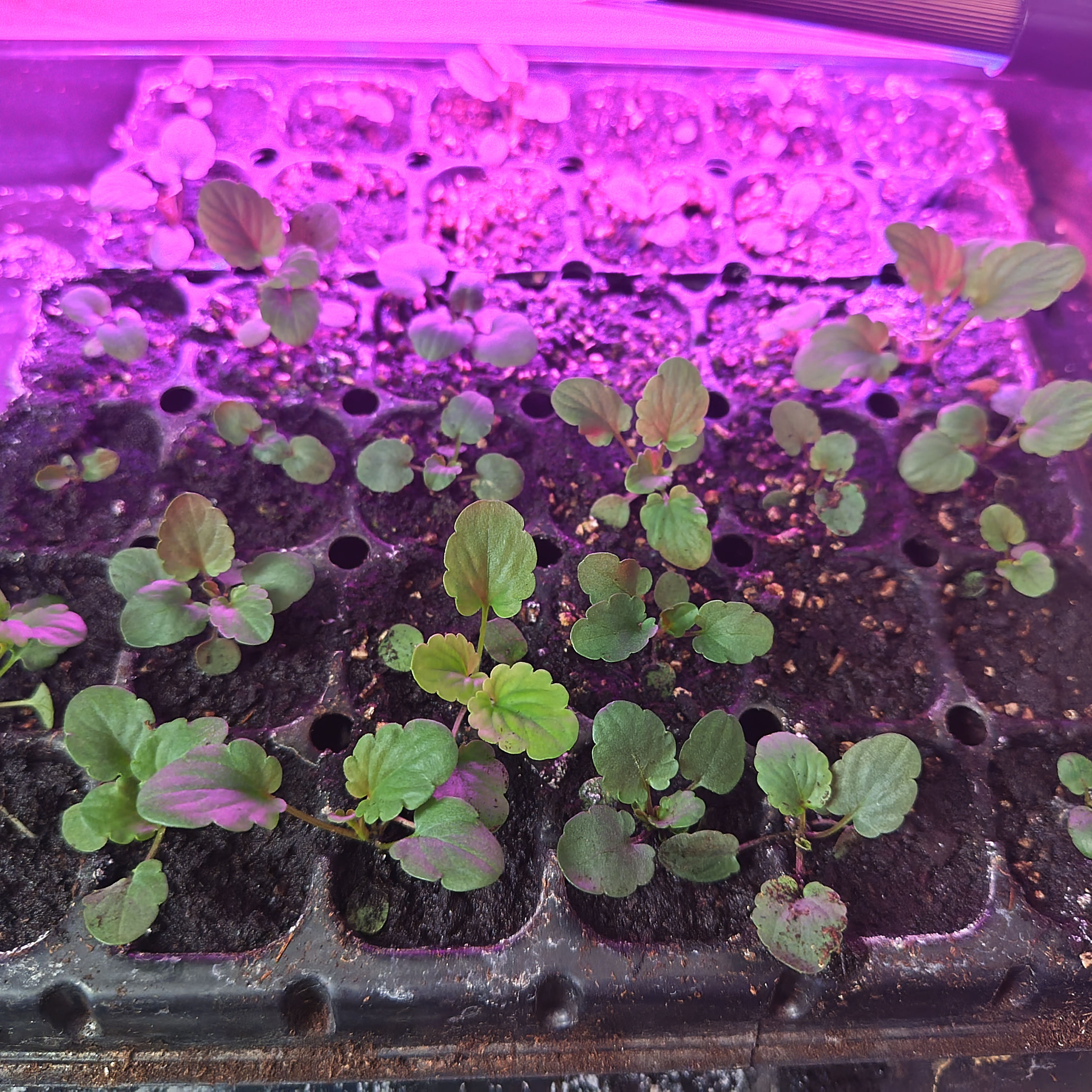 種まきしたパンジー まだまだ赤ちゃん苗ですが だいぶ大きくなりました。 安物の植物育成ライトの光が毒々しいピンクですがw こんなんでも点けてると徒長しないんだから たいしたもんだ。 ポット上げもそろそろかな。 今日は久しぶりに晴れたので 秋じゃがいもの植え付けをしようかすごく悩んだけど なんか明日、明後日とまた雨みたいだし… 今週末にしようかな。