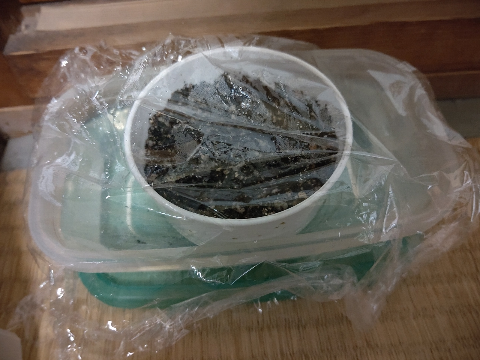 腰水をして、乾燥をしないようにラップをかけました。