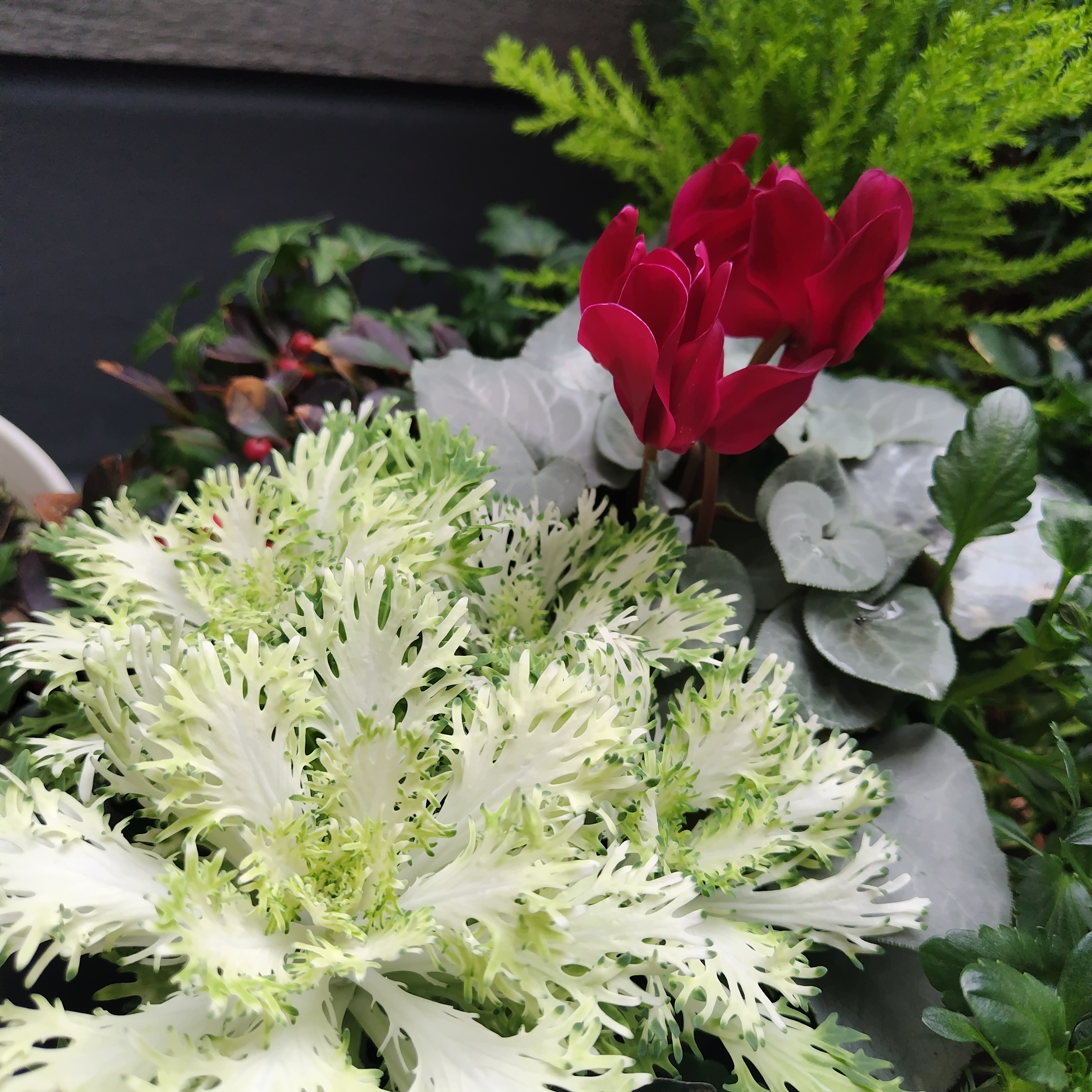 クリスマス寄せ植えに入れたシクラメン