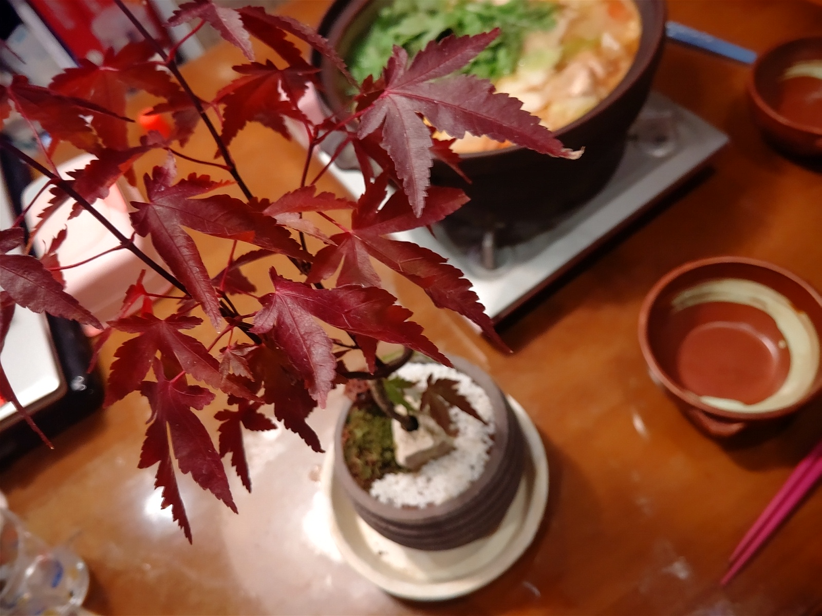 モミジの盆栽が良い感じに赤くなったので