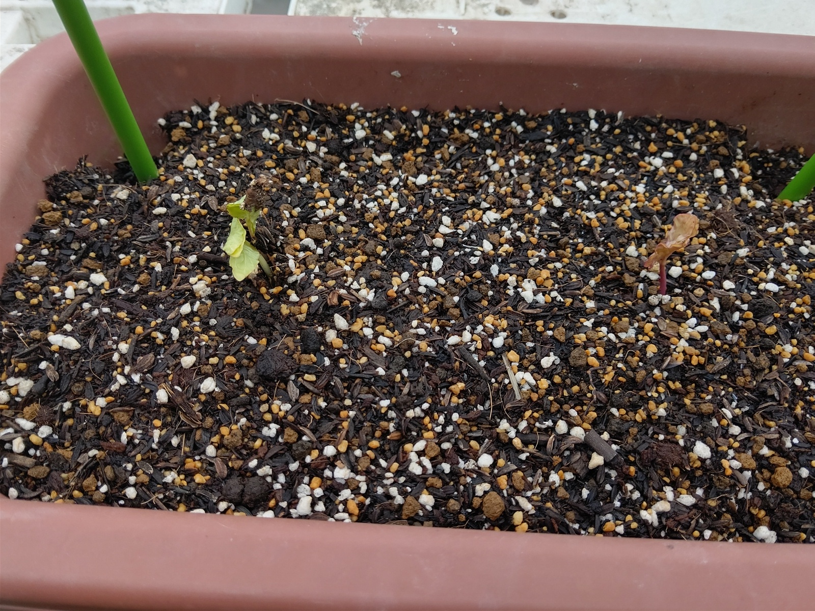 去年の種なので、念のため4か所に2粒ずつまいたんだけど
