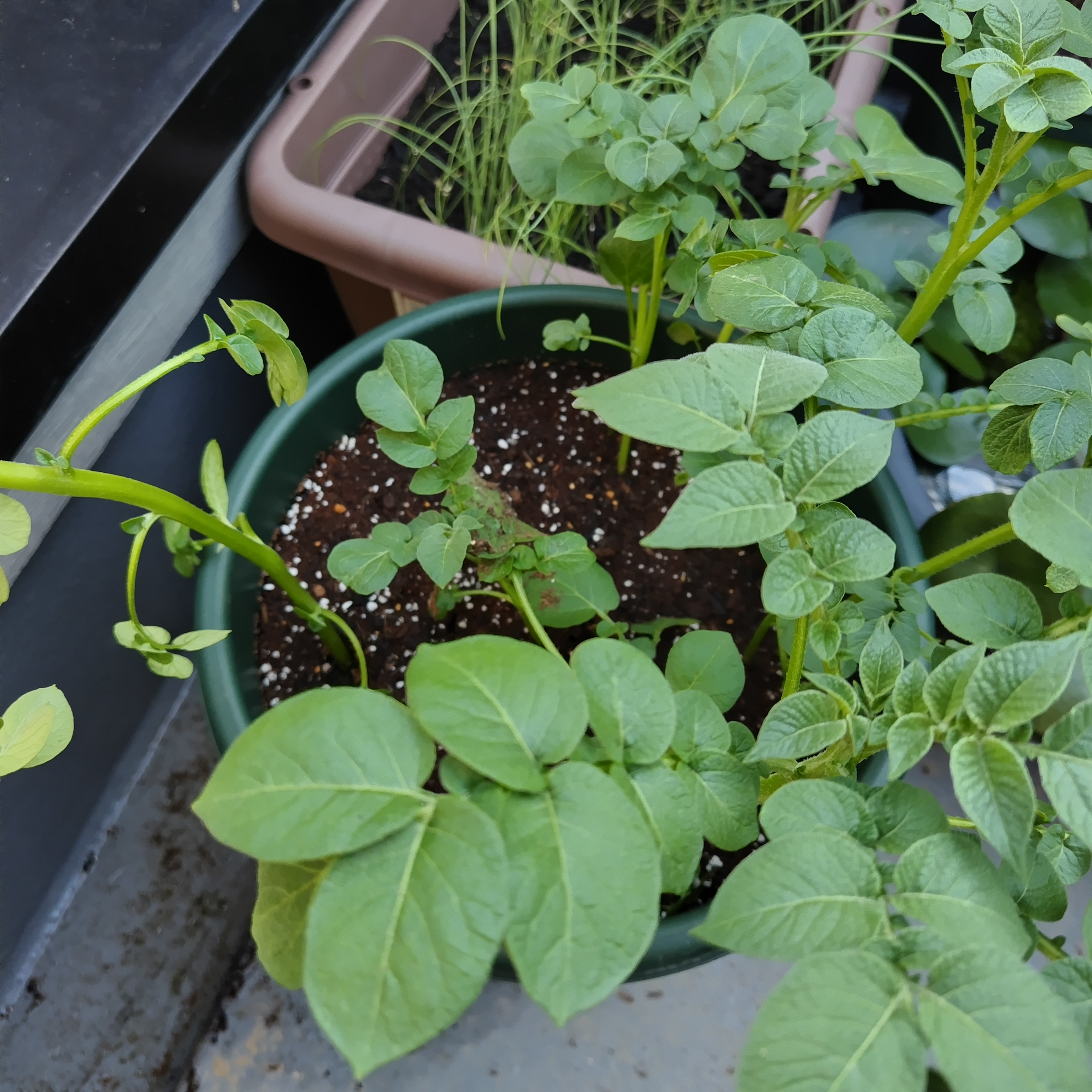 ずいぶん芽が伸びてきたジャガイモの土寄せから