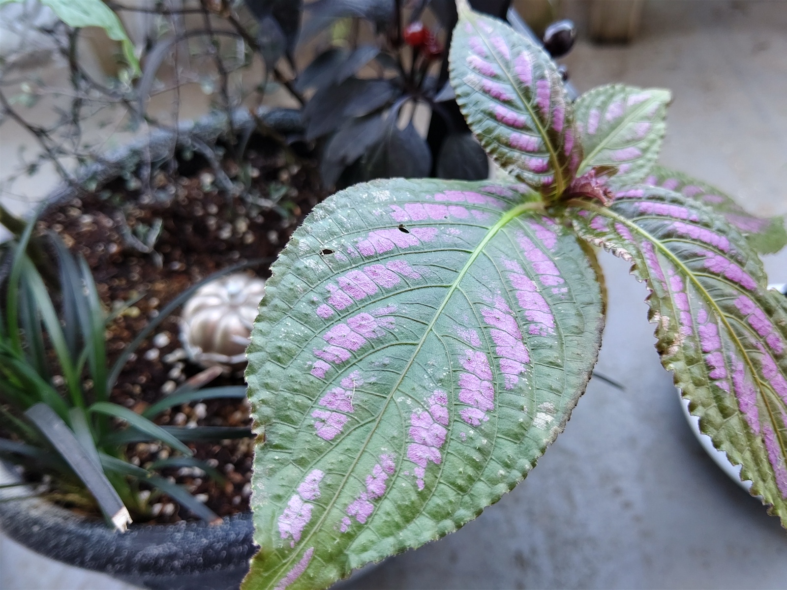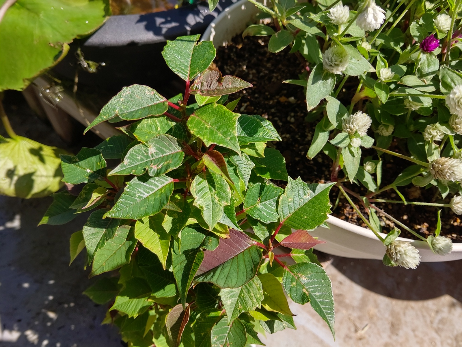 紫色のカラーリーフ、なんだかガイコツみたいでしょ。