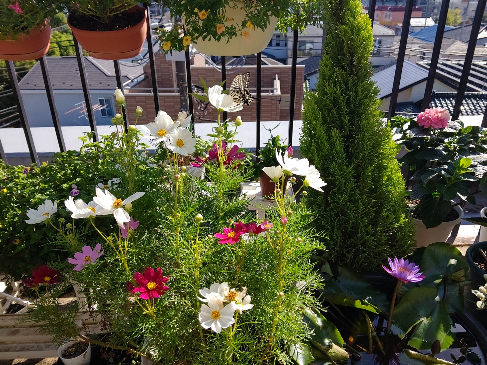 お気に入りは後方左側に入れたコロキアコトネアスターです。