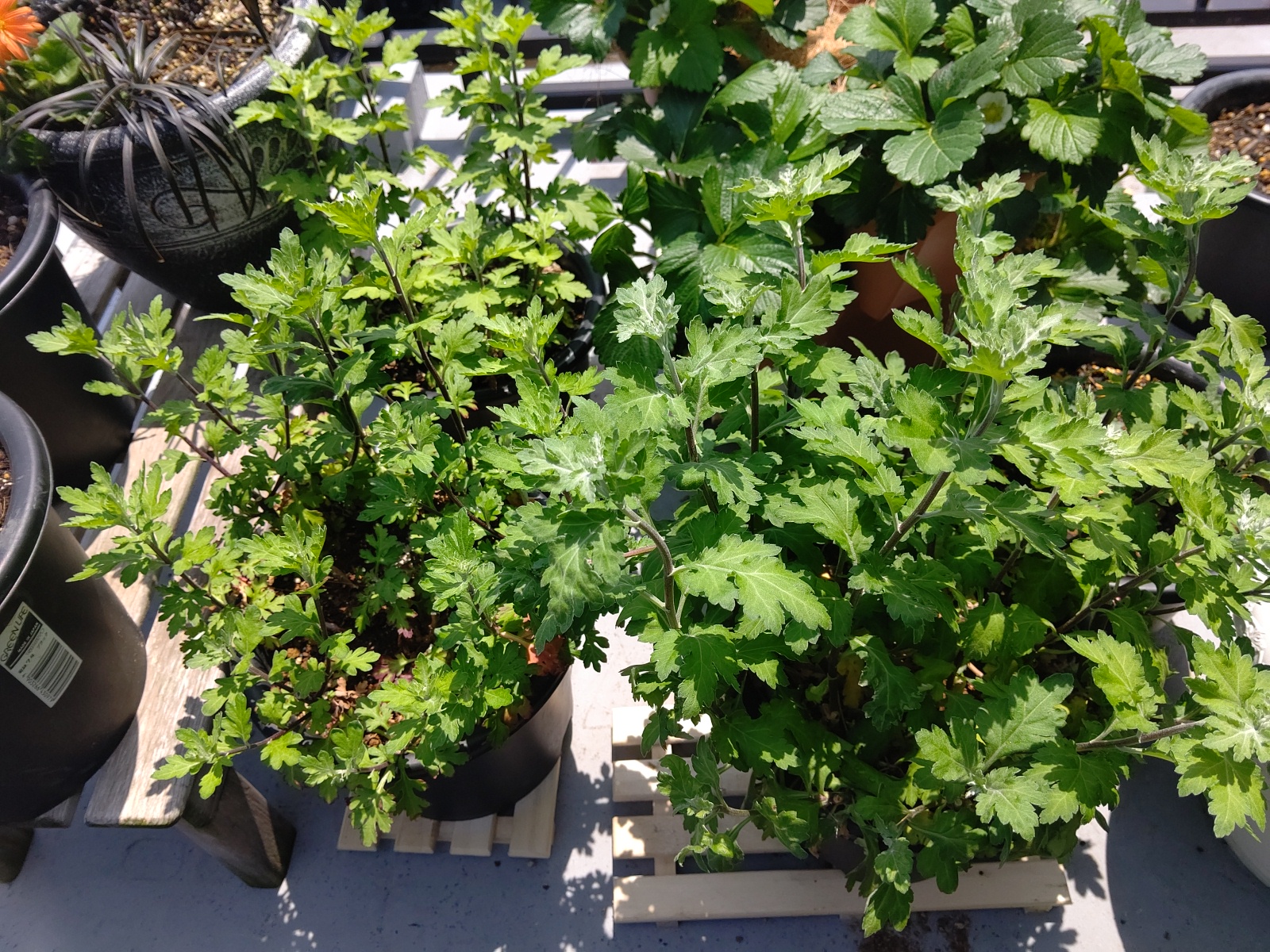 両方とも花が終わって、葉っぱが茂ってきました。