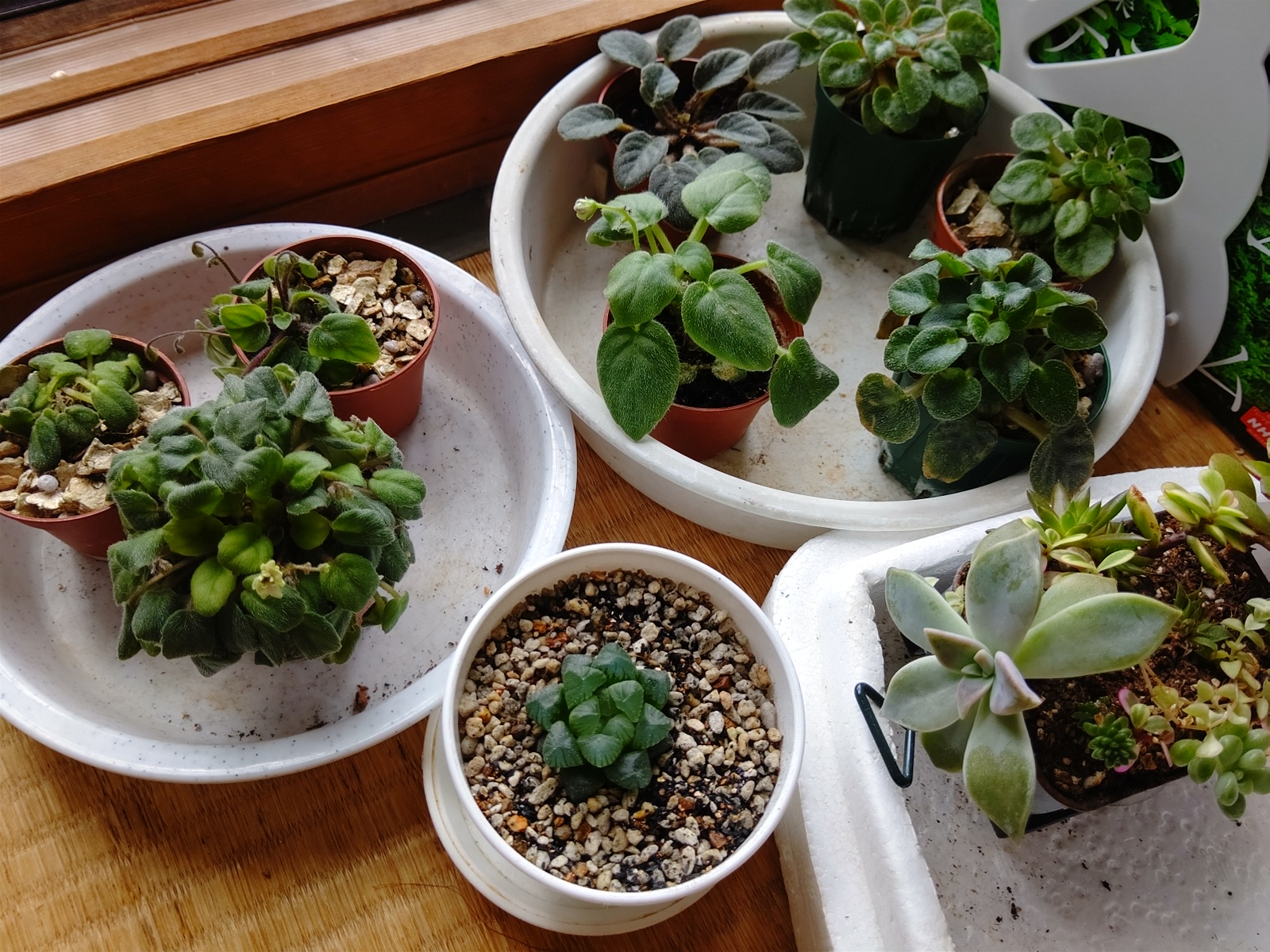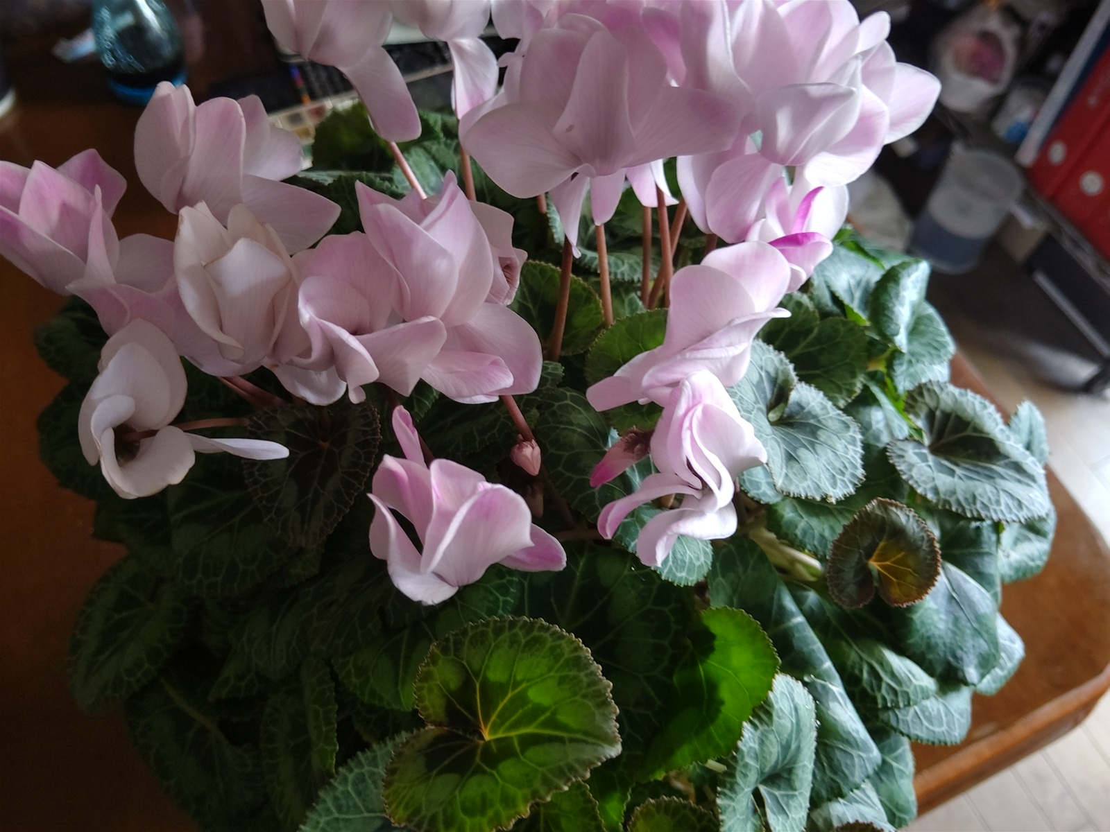 これは外ですw 昨日、載せるのを忘れたカリブラコアです。 アブラムシ大発生してバッサリ切ったけど もう完全復活! ここから室内 シクラメン こんなに咲いちゃってます… 普通に冬みたいに咲いてるよ… 疲れちゃって冬は咲かない、とか ないのかなあ… 心配です。 アンスリウム トロピカルな観葉植物が欲しくなり、 お迎えしました。 真っ赤なのにしようか迷ったけど ピンクにしました。 この子はいずれ学校に連れて行くつもり。 ミニセントポーリア、ハオルチア、多肉寄せ植え 一か月くらい出勤しないので 全員連れ返ってきたw セントポーリア、元気がない子がいくつか 心配だなあ。 セントポーリアや多肉って場所に慣れるからね。 でもさすがに一か月放置はできなくて… そしてウサ耳モニラリア そろそろ種まきして一年www なんとか生きてるけど、大きくなるのか???