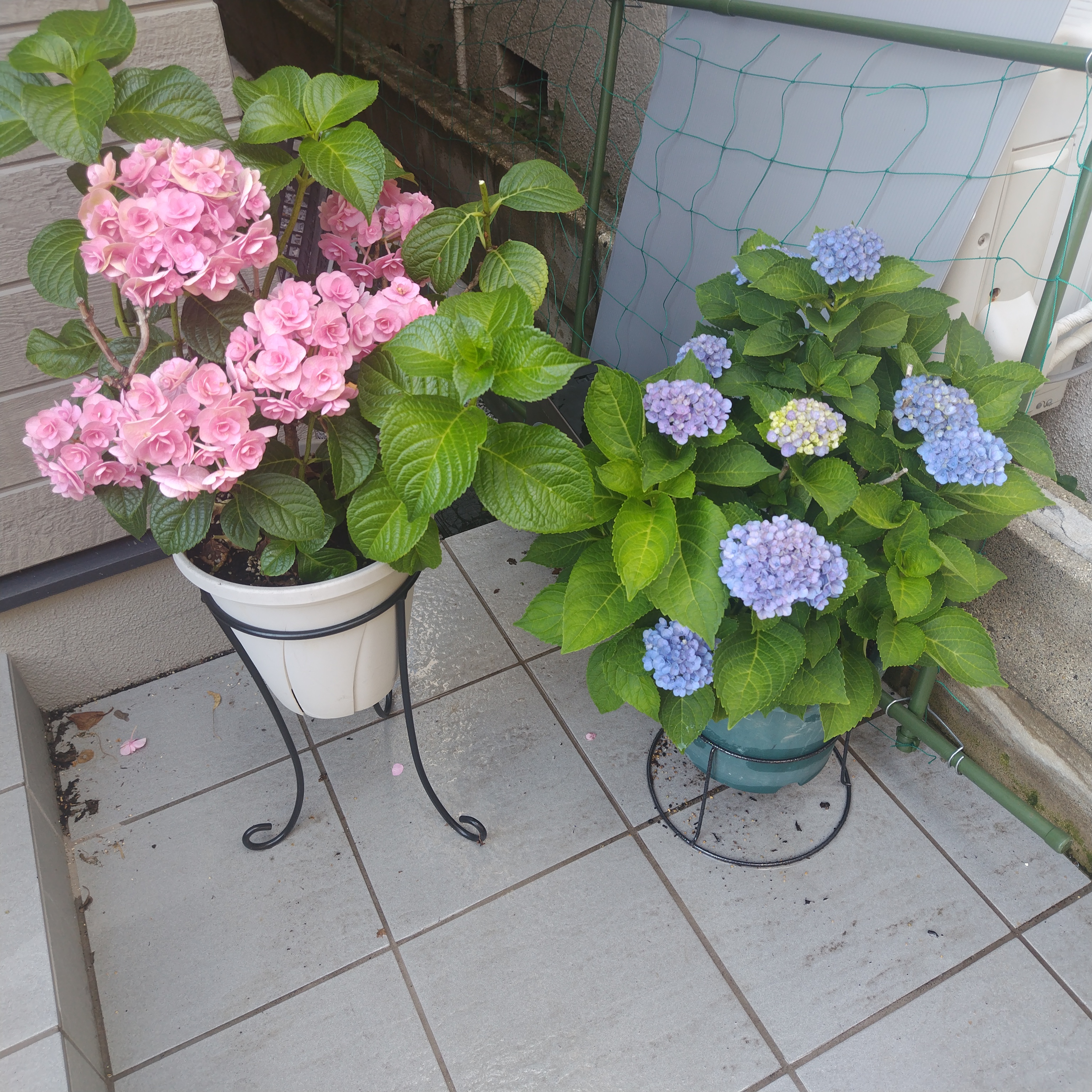 アジサイ、ブルーのほうやっと色づいてきた。