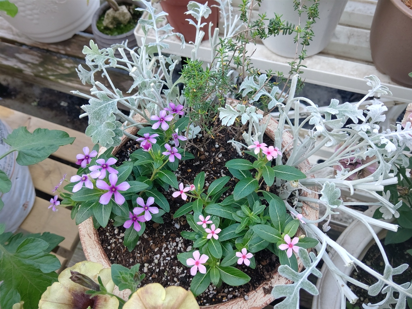 昨日購入したフェアリースターを入れて寄せ植えにしました。