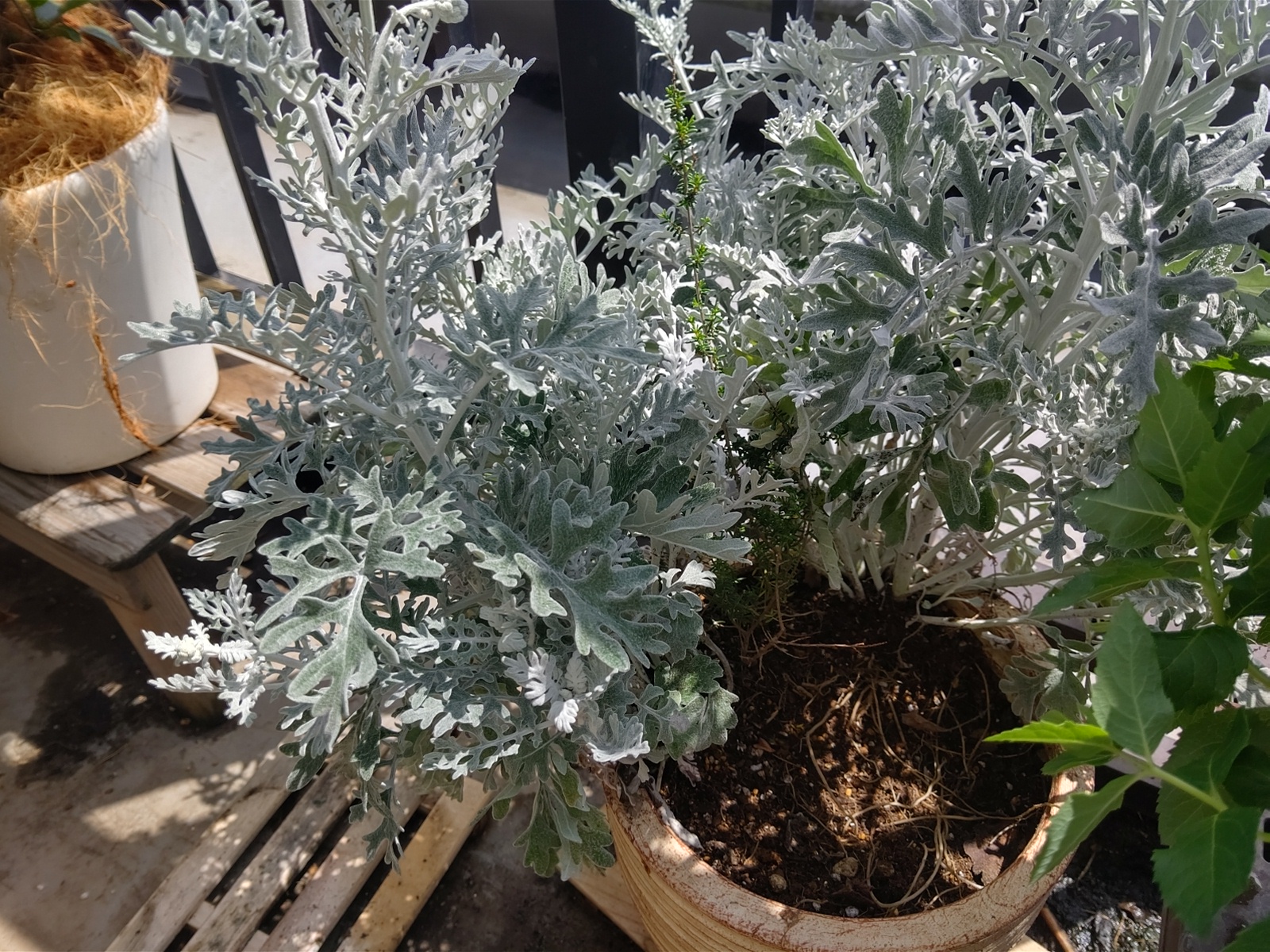 シロタエギクは伸びきってどうしようもないので