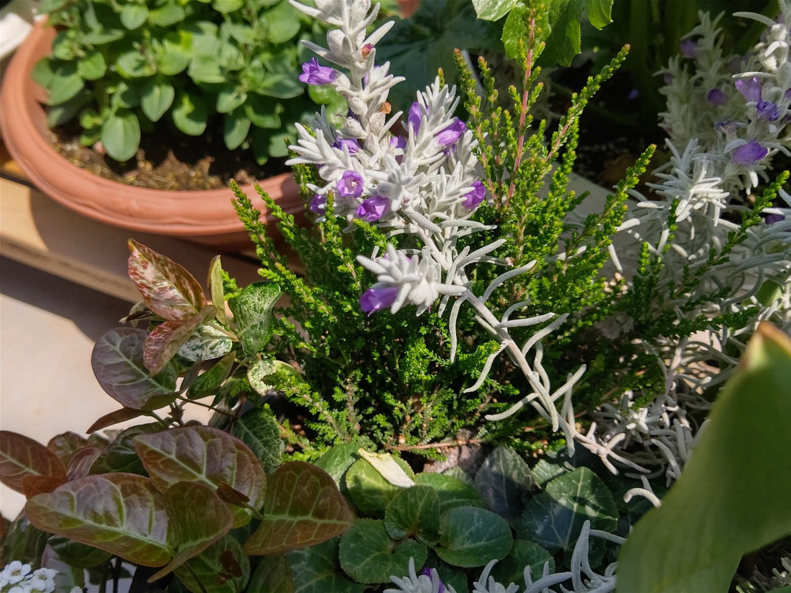 エレモフィラにちっちゃい紫色の花がつきました。可愛い。