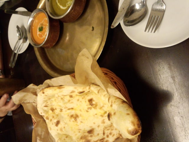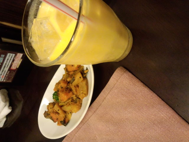 本格的インドカレー屋さんに行きました。 お通しです。  ネパールの炒め物だそうです。 飲み物はマンゴーラッシーです。 タンドリーチキンです。  まろやかですごくやわらかかったです。 ほうれん草のカレーとバターカレーです。  ナンにつけて食べました。 めちゃうまでした。 このあとキーマカレーもきたんですが 写真撮るの忘れました。 デザートもあったみたいですが おなかいっぱいで食べきれなかったので ことわりました。 おいしかったでーす