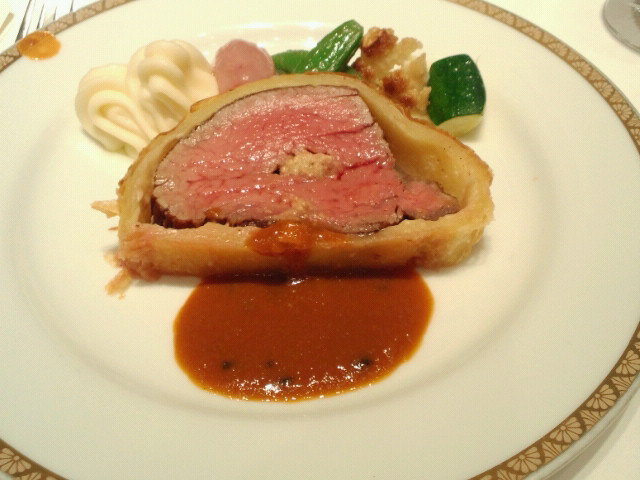 料理長さんがメインのお肉を目の前でカットしてくれました。