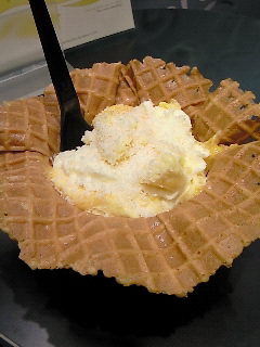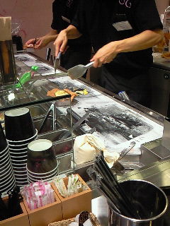 私のアイスを混ぜ混ぜしてくれてるお兄さん。