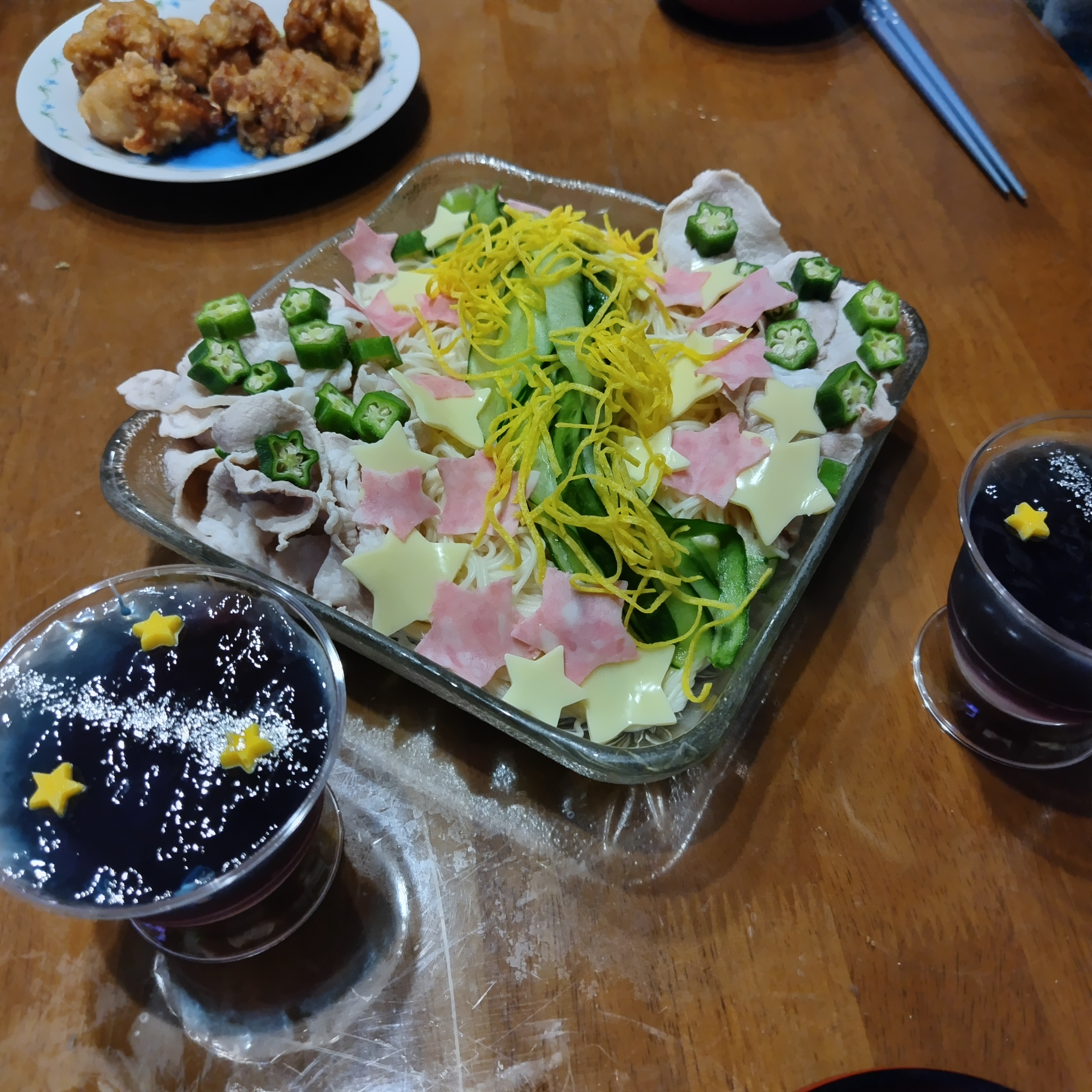 夜は七夕そうめんを作りました。