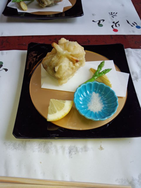 湯葉の茶巾精進揚げ。