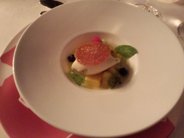前の前の学校の人たちと ディナーしてきました。 チーズの上にいろいろのっていたんだよな。 (忘れたようだ) スズキだったよな。 ガスパチョソースで。 (細かいことは忘れたようだ) メイン。 ミルクだけで育てた豚だと言っていた。 ハムもおいしかったよ。 デザートはバナナのアイスと ラム酒につけこんだフルーツ。 おいしかったでーす! お客さんはうちらしかいなかったのが ちょっと気になったけれども!w