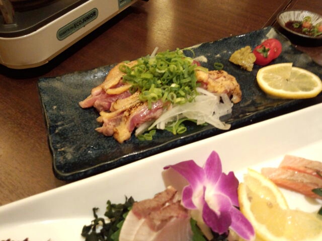 食べまくっています! あさりの地獄炊き  結構、味が濃かったw 炙りお造り  お魚美味しいお店でした 鶏のたたき  コリコリしてた! おいしかったでーす