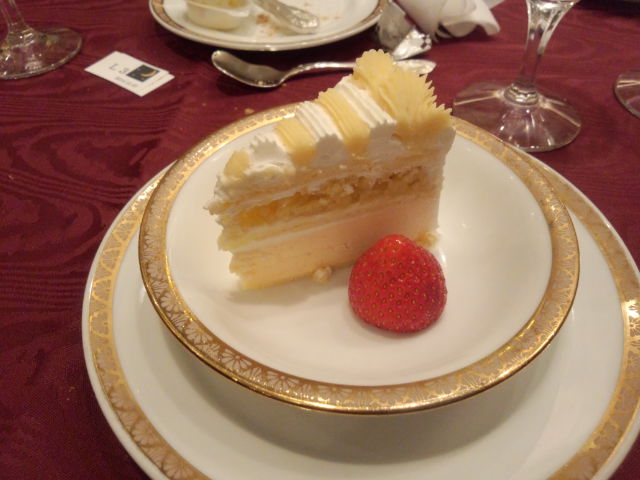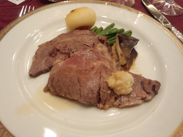 建て直し工事のため 3年半の休館に入り 今回がラストのディナーです。 東京會舘伝統のメニュー…ということですが メニュー表もらってくるのを忘れて 正式なお料理の名前がわかりませんw サーモンのシーフードカクテル 確かに、以前にいただいたことのあるような。 こちらは魚介類おいしいと思う。 グラタンスープ あっつあつ! フタを取りに来た給仕さんが 「これめっちゃくちゃ熱い!」と 悲鳴を上げていたw ローストビーフ 量も多くて豪華だったわー レホールが好きなので いっぱいついてて嬉しかったw デザート マロンを使ったケーキがここの定番なんだよね。 今回、中はアイスでしたよ。 おいしかったでーす