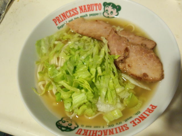 沖縄に行った同僚にお土産で 乾麺の沖縄そばをいただいた。 ねぎがなかったので レタスをきざんでタコライスっぽく入れてみたら 結構いけたw