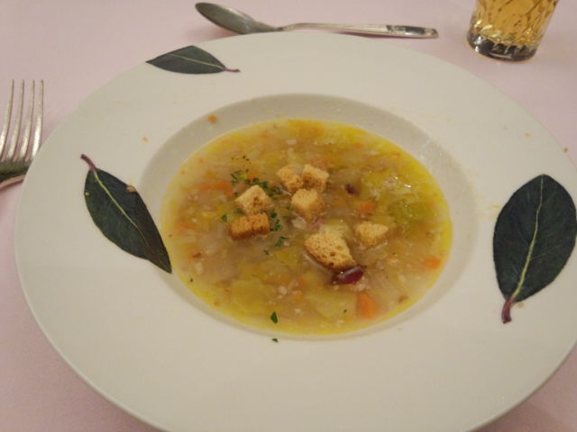 有機野菜・サツマイモ・押麦・パンチェッタのスープ