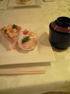 フランベしていただいた柚子酒を醤油であえ、散らし寿司にかけました。