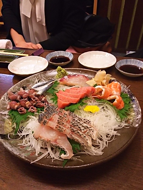 お魚の美味しいお店に行きました、 真ん中にあるのはマグロの脳天 なかなか食べられないみたいよ。