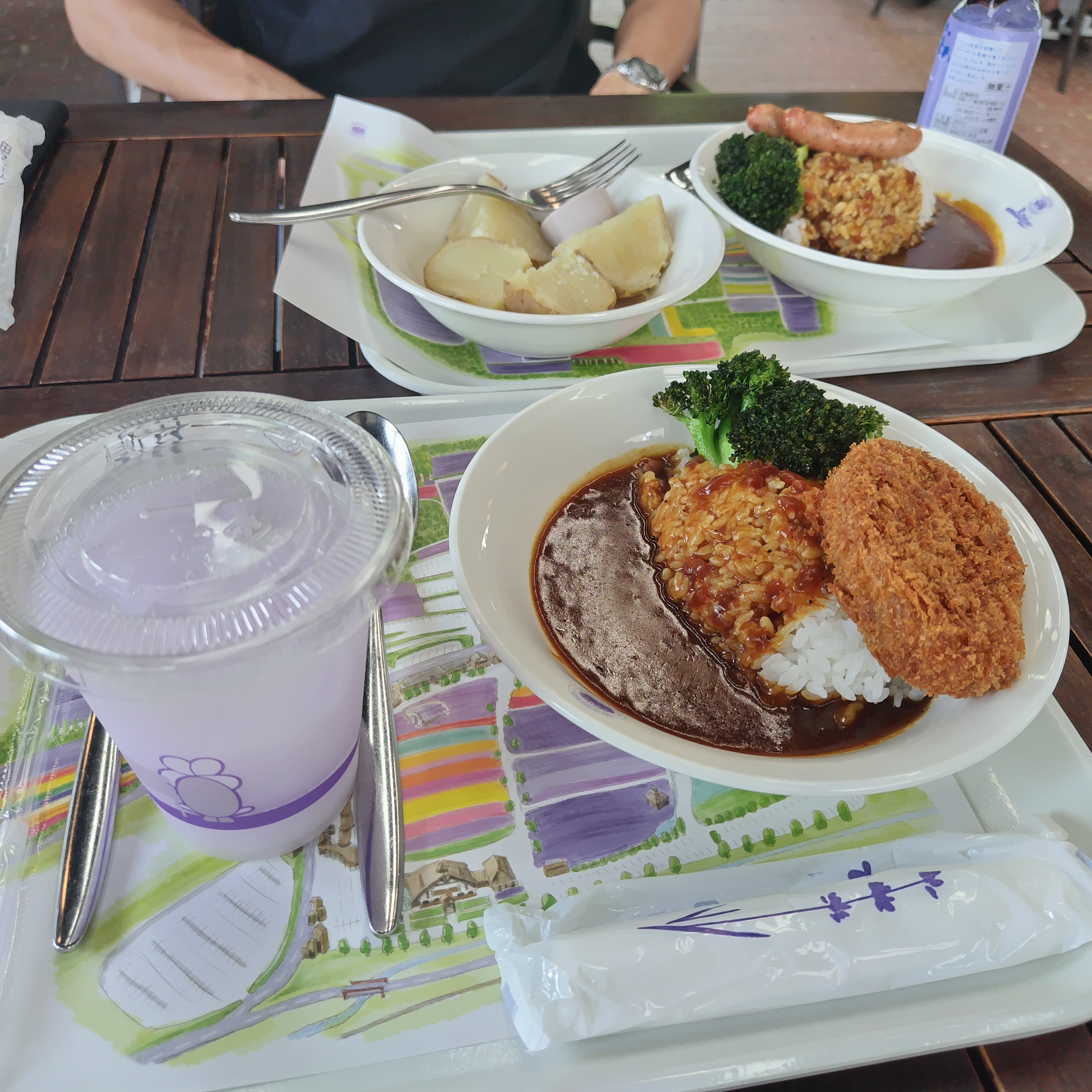 ラベンダーラムネ、ラベンダーカルピス、ラベンダーバターの乗ったジャガバタと