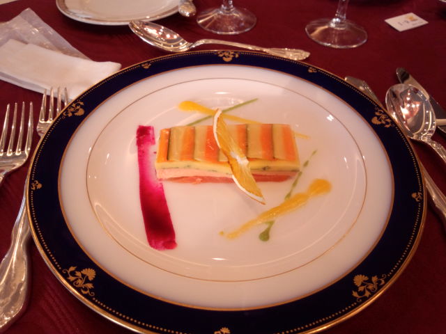 トラウトサーモンのフォンダンオレンジクリームのガトー仕立