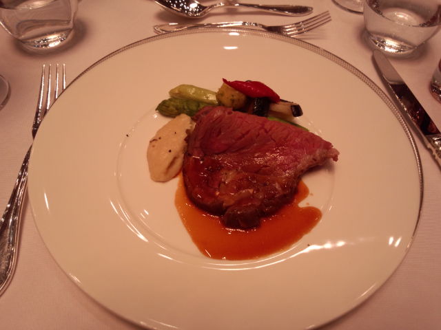 メインは黒胡椒の香るメキシコ産の牛リブロース バニュルス・ヴィネガーを加えたグレイビー