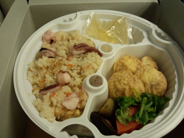 新幹線の中で食べようと思って 駅弁を買いました。 下のほうにある紐をひっぱると あたたまる仕組みになってました。  明石焼きとたこめしなんだけど すっごくあったかくなりました。 幸せ気分でした。