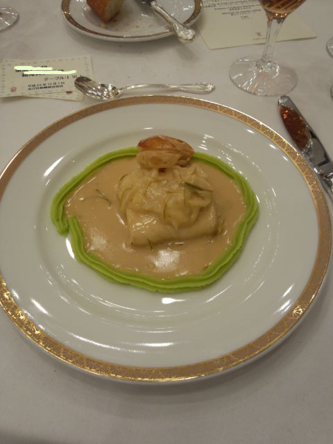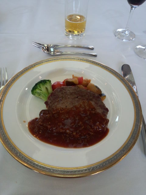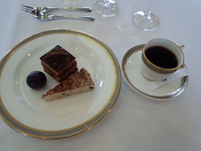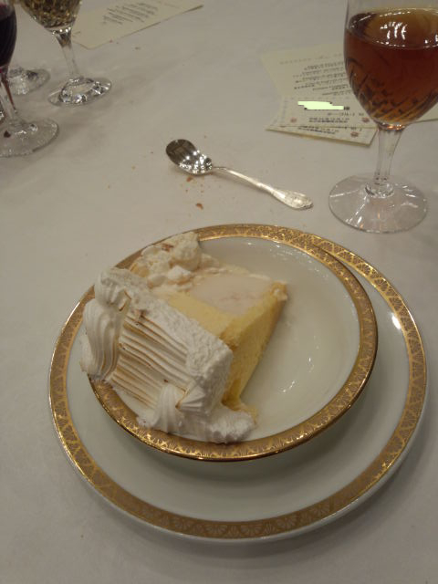 デザートのケーキには船の名前が書いてあるチョコが乗ってました。