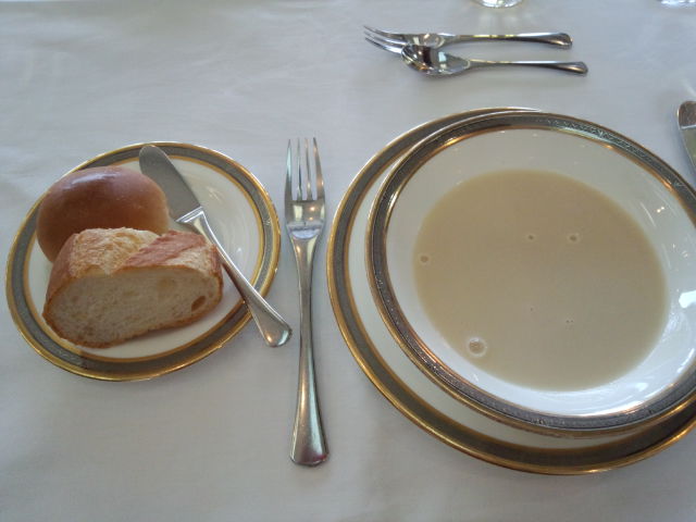 ポタージュスープとパンです。