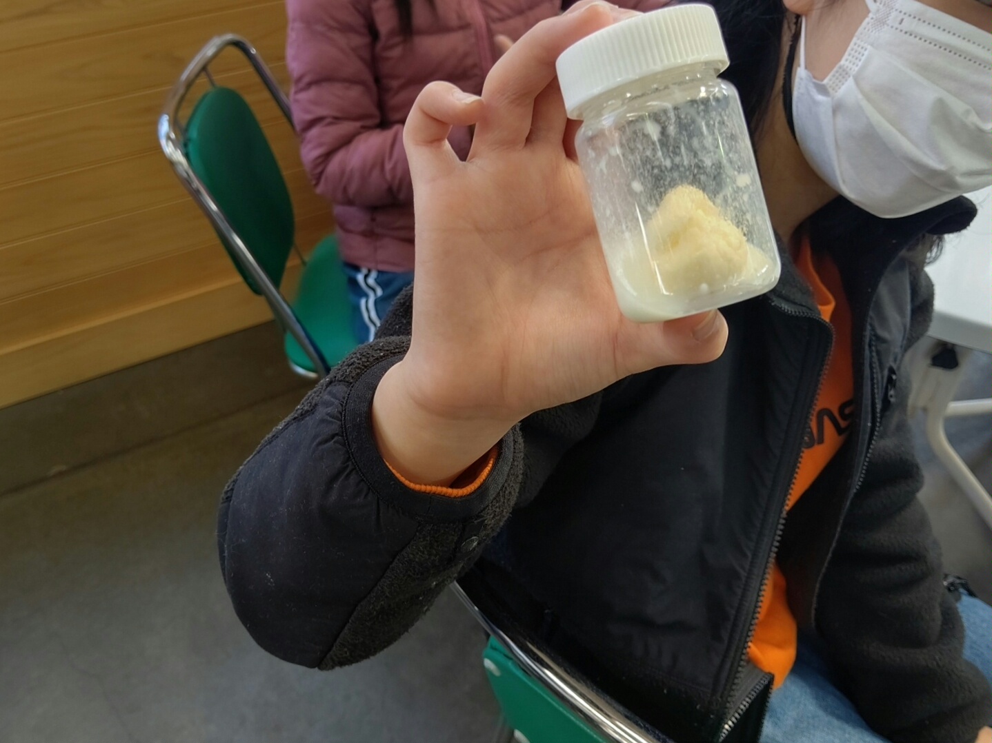 小さなプラスチックのビンに脂肪分の濃い生クリームを入れて