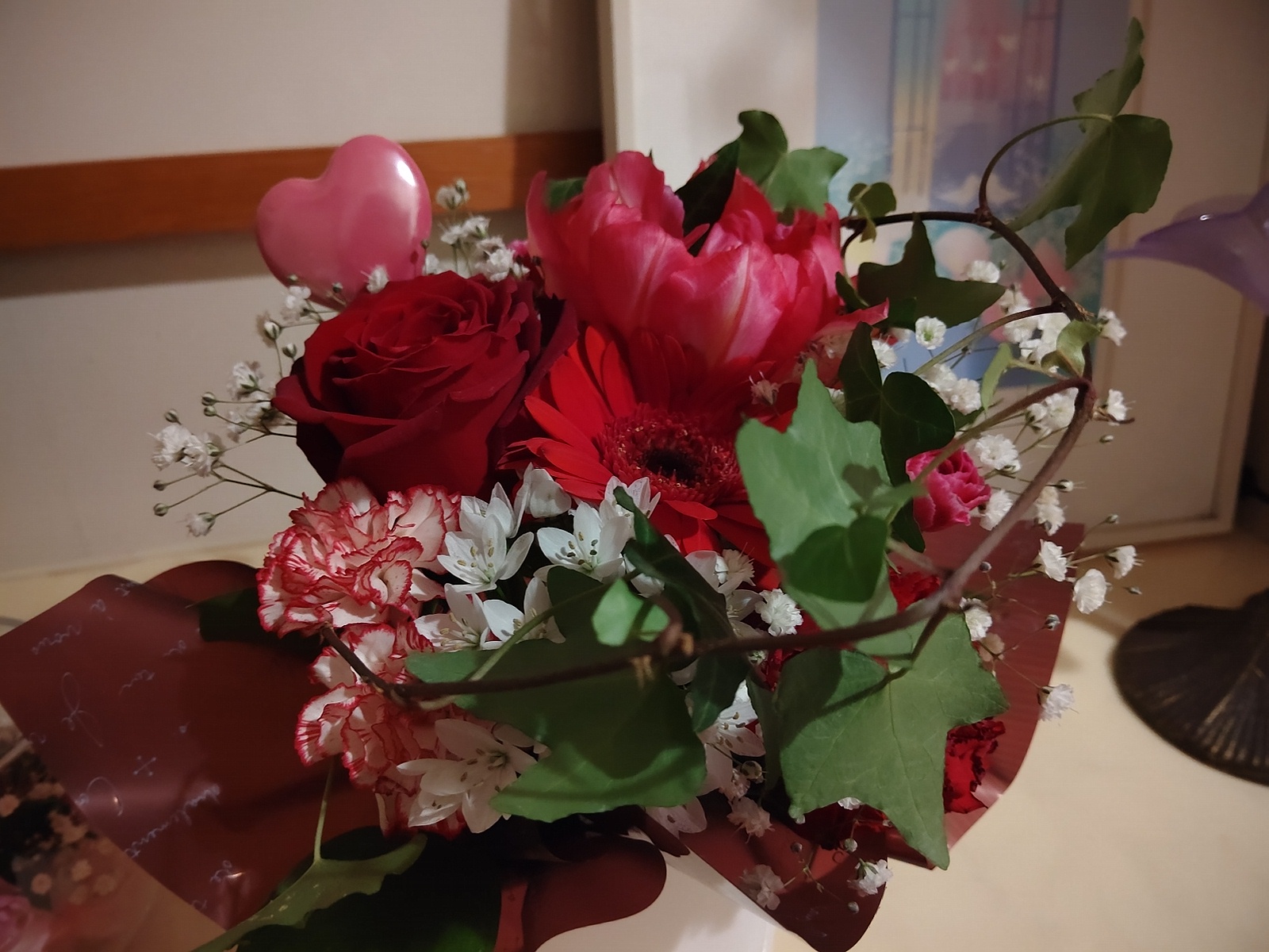 一応、飾り紙がチョコレート色だよw 赤のお花に、ピンクのハート♡ 可愛いなあw そう、むしろ自分で欲しくて買ってるからねw