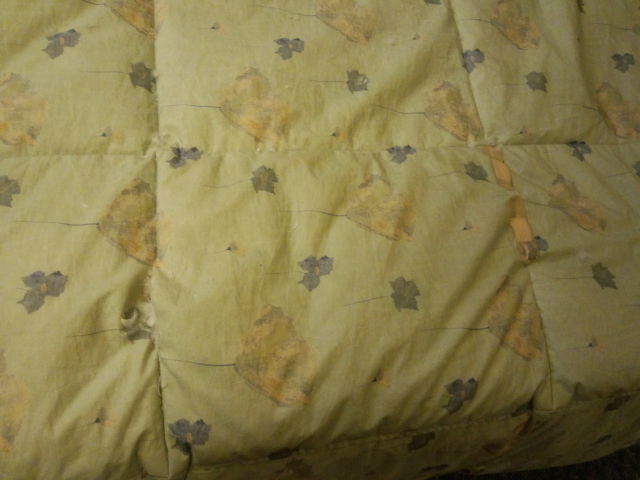 よく見ると、羽毛布団がほころびててそこからどんどん