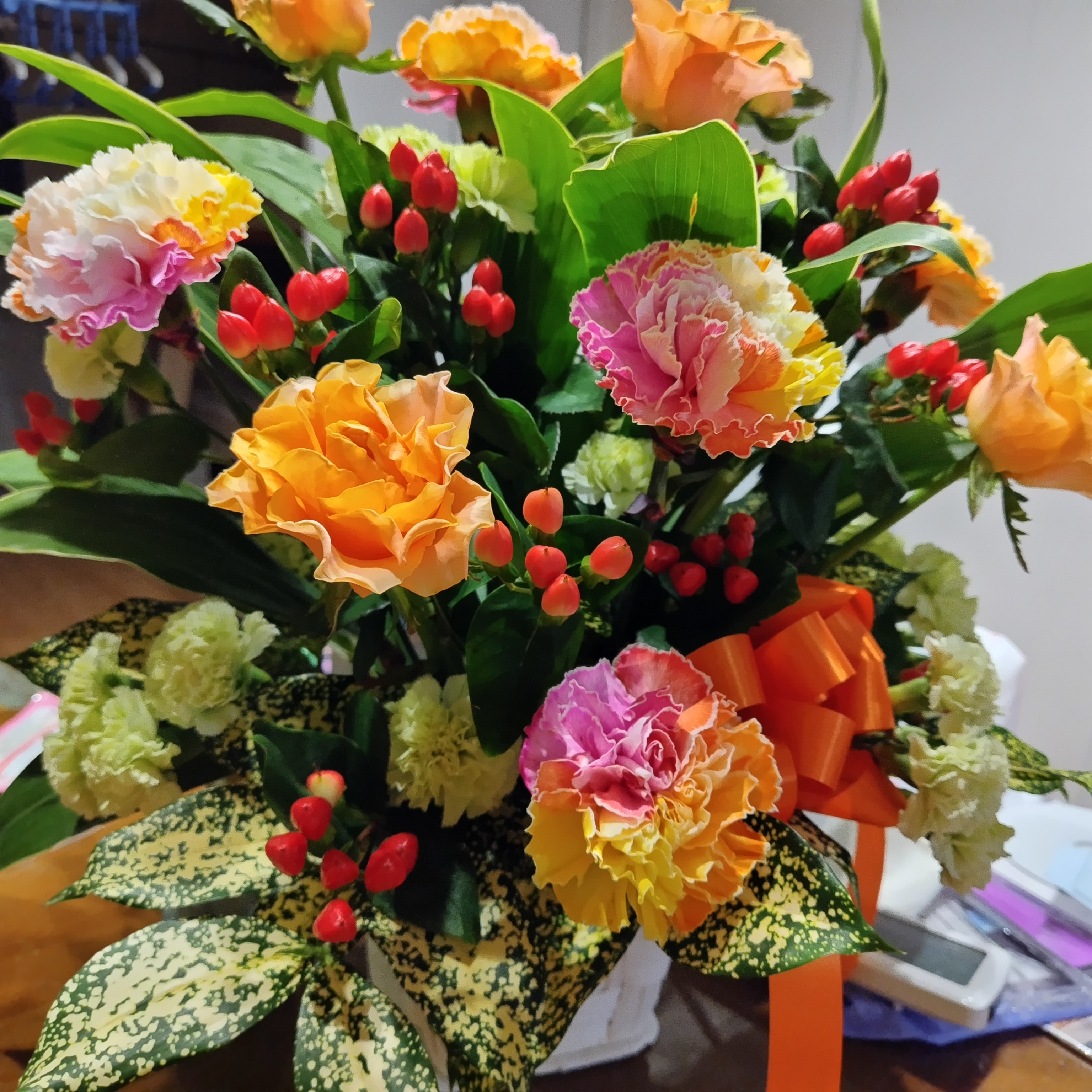 息子が大きなフラワーアレンジメントを贈ってくれました。