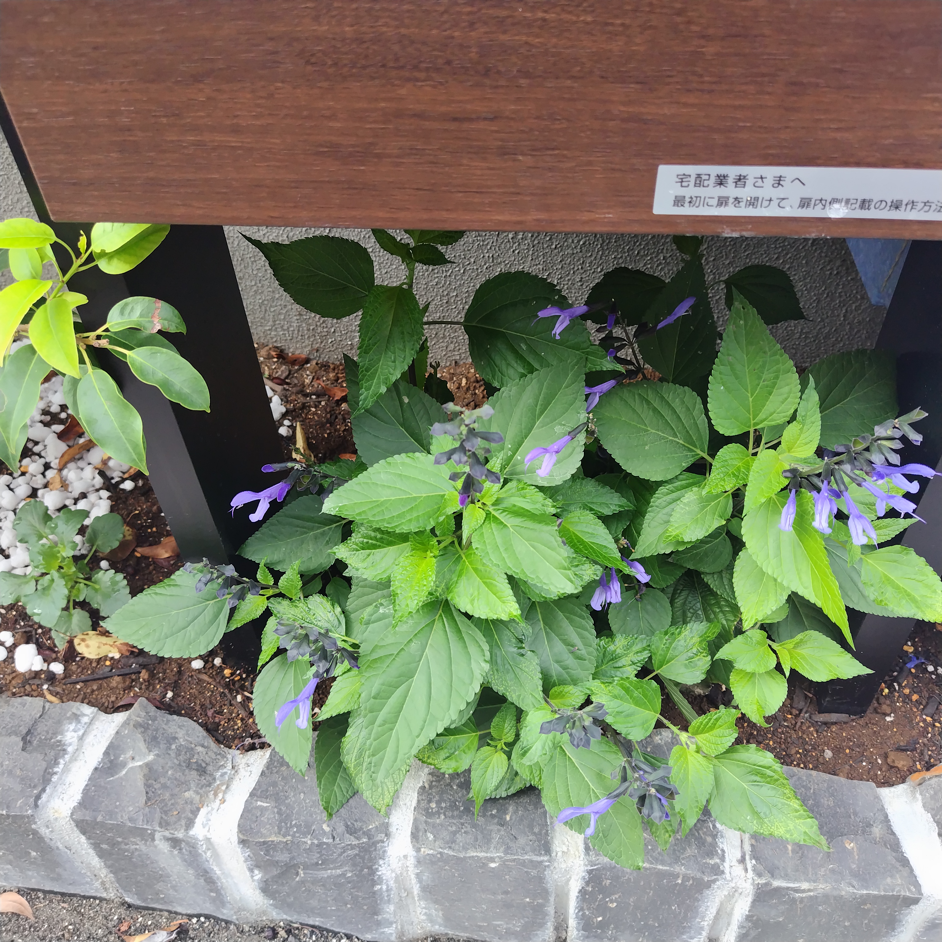 ポストの下のスペースにメーカーさんがサービスで植えてくれたサルビア