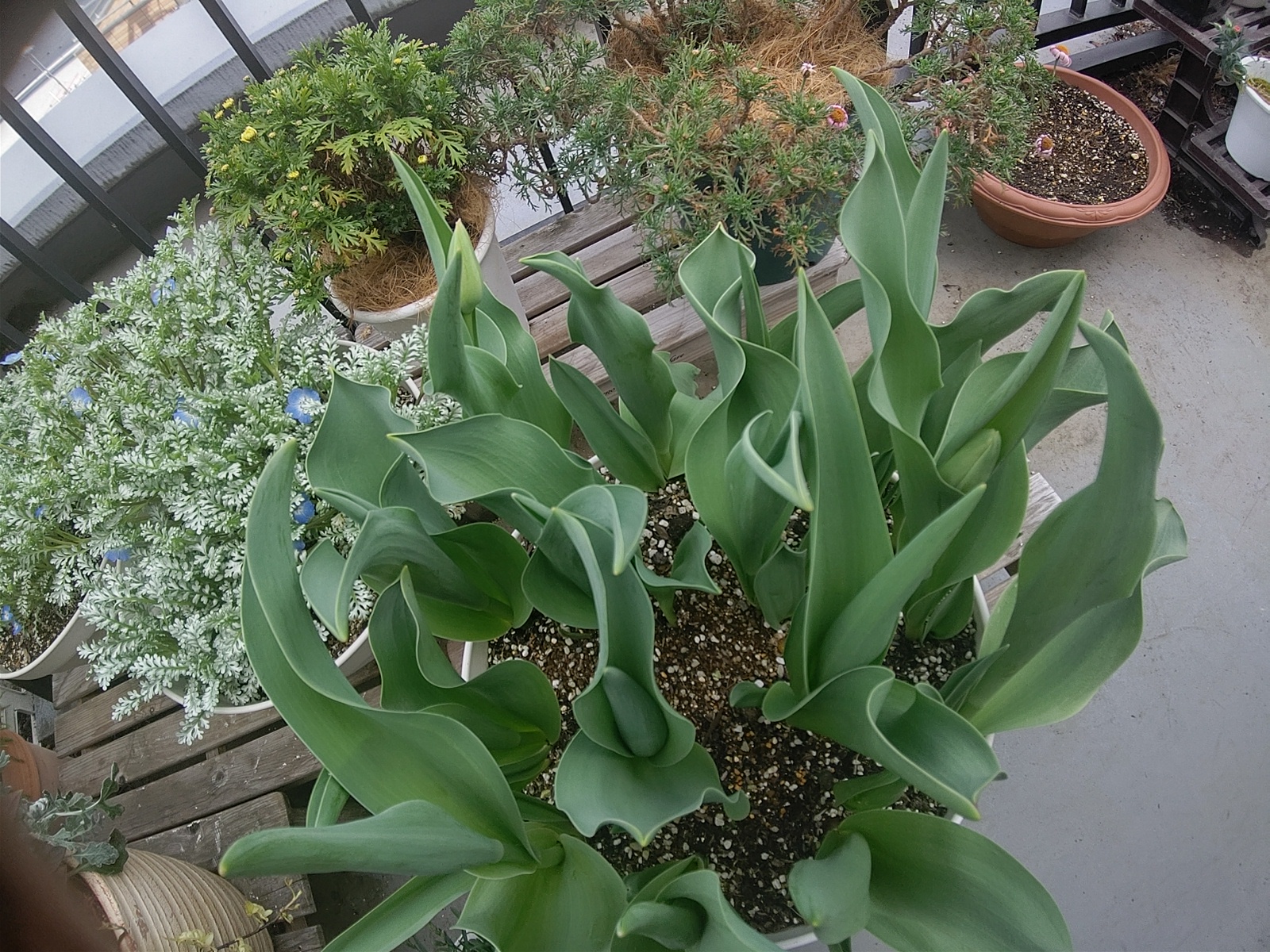 クリスマス寄せ植えの下に忍ばせておいたチューリップの球根も