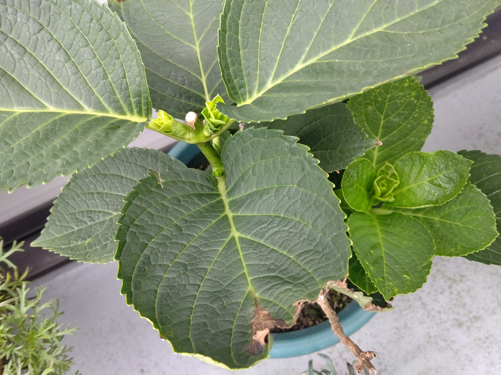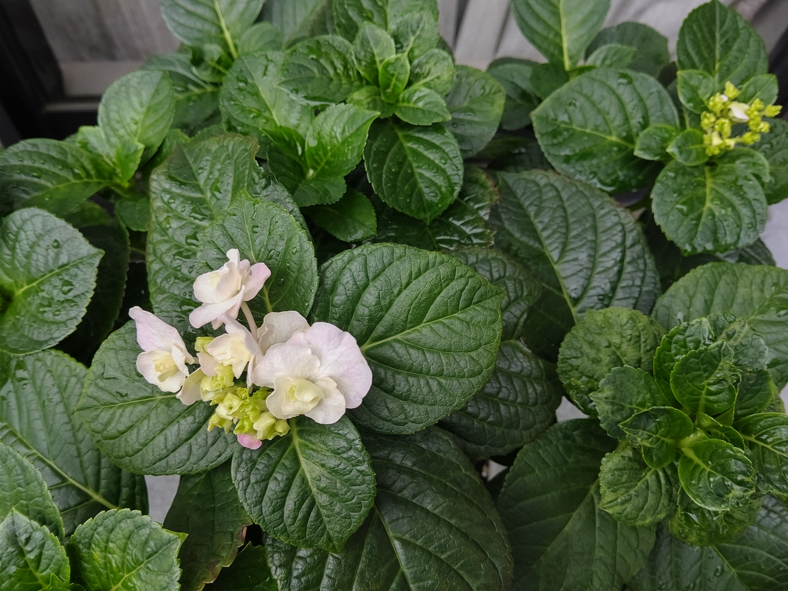 右側のハイドランジアのほうは普通に成長中。
