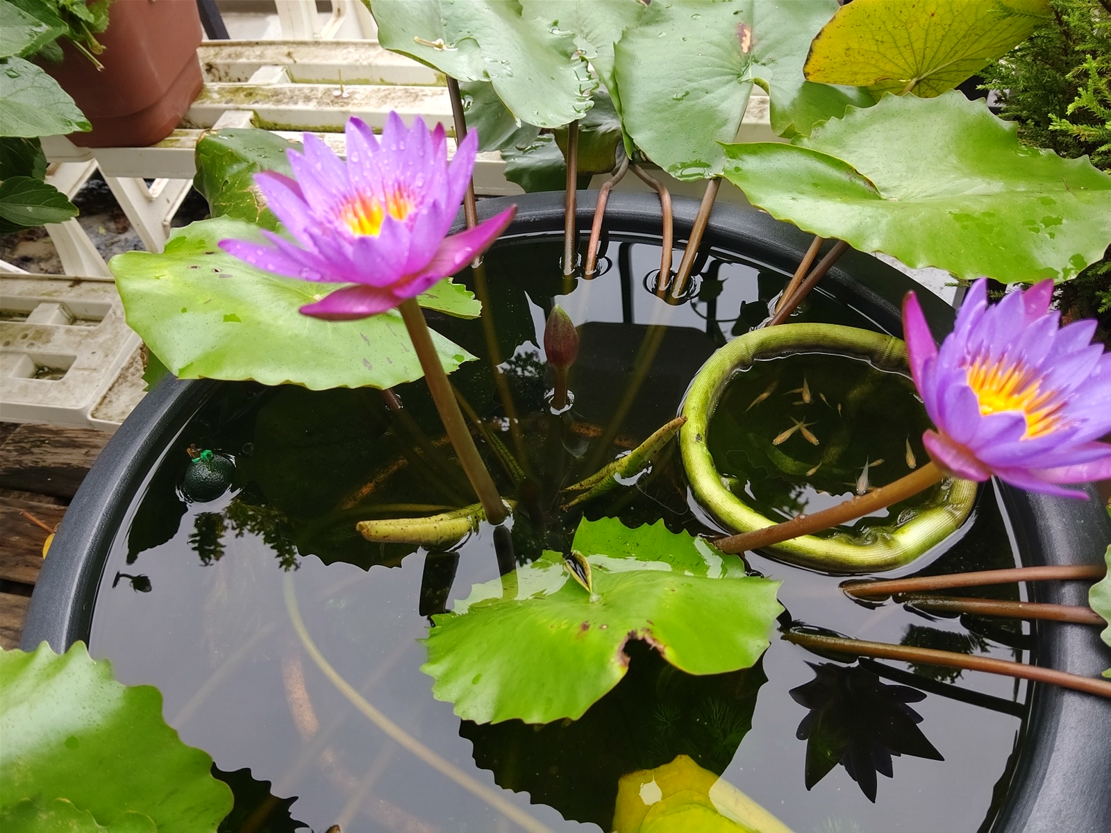 雨だから花の世話もできないし