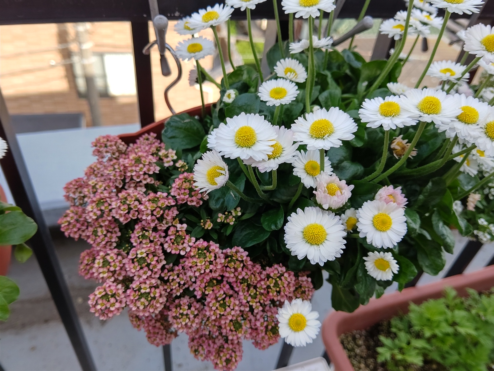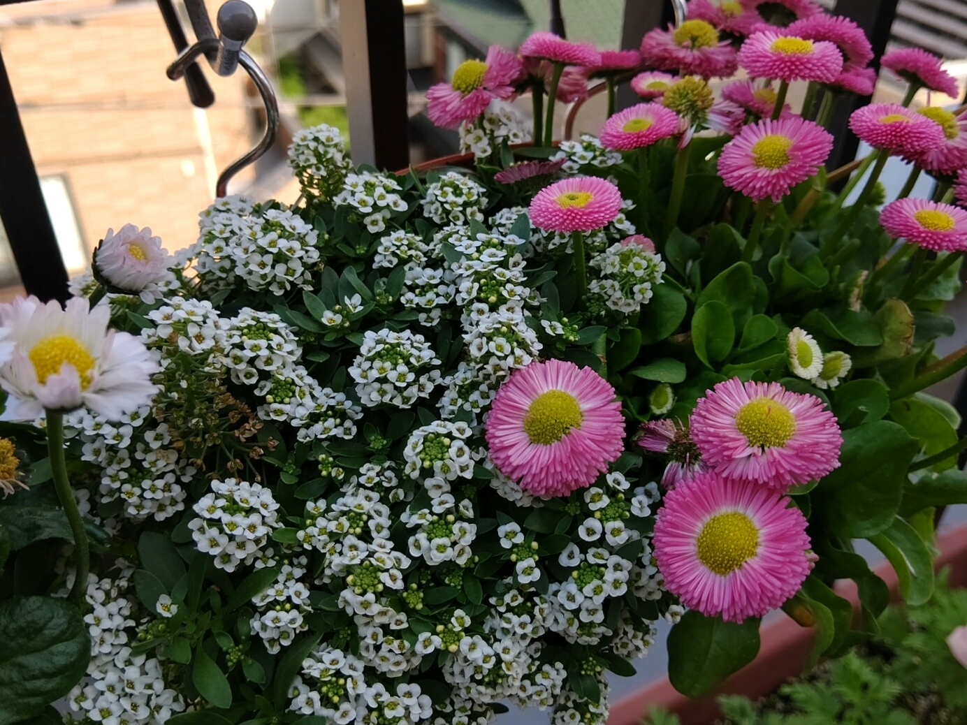最初は貧弱で、失敗だったかなあと思った薄ピンクのアリッサムも