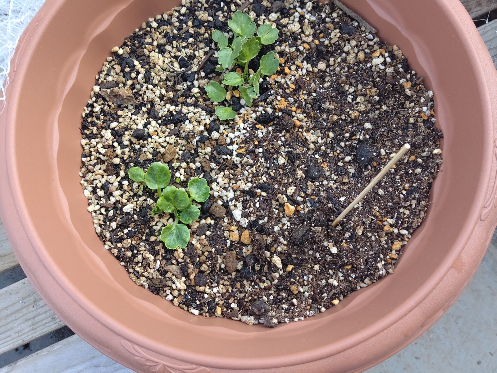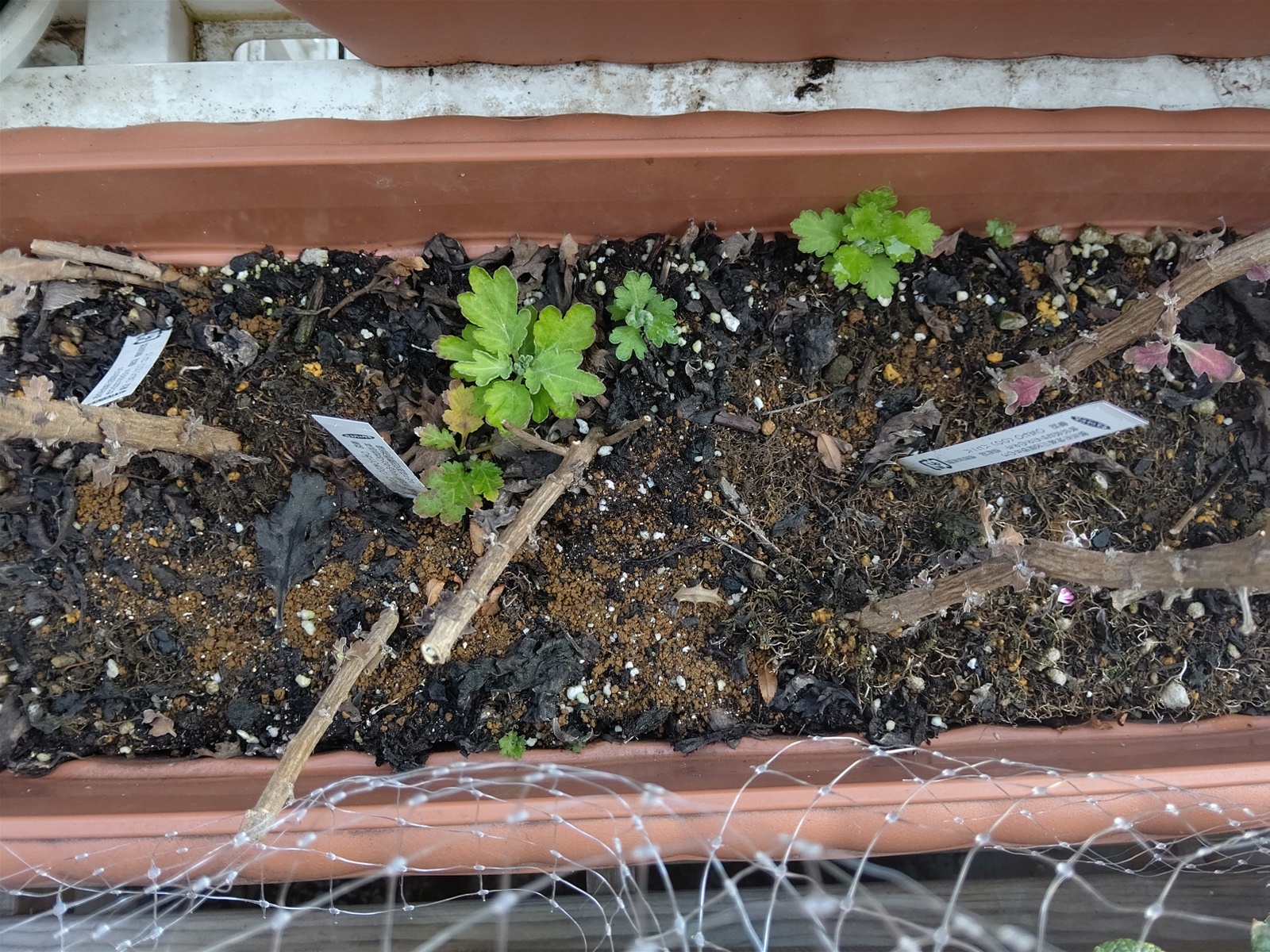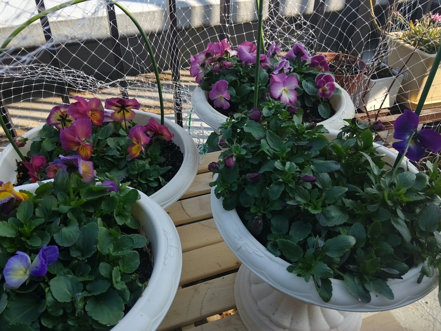 なんと、ネットの隙間からパンジーを少しかじっていた!