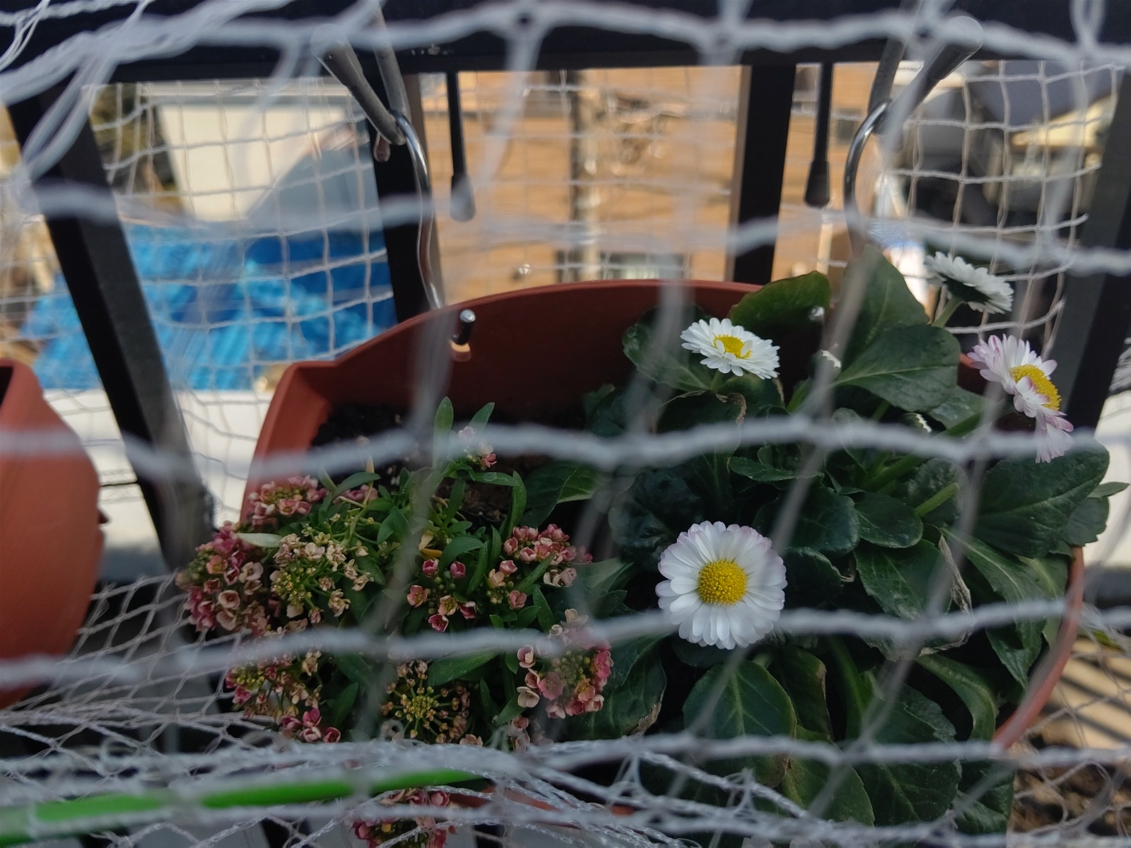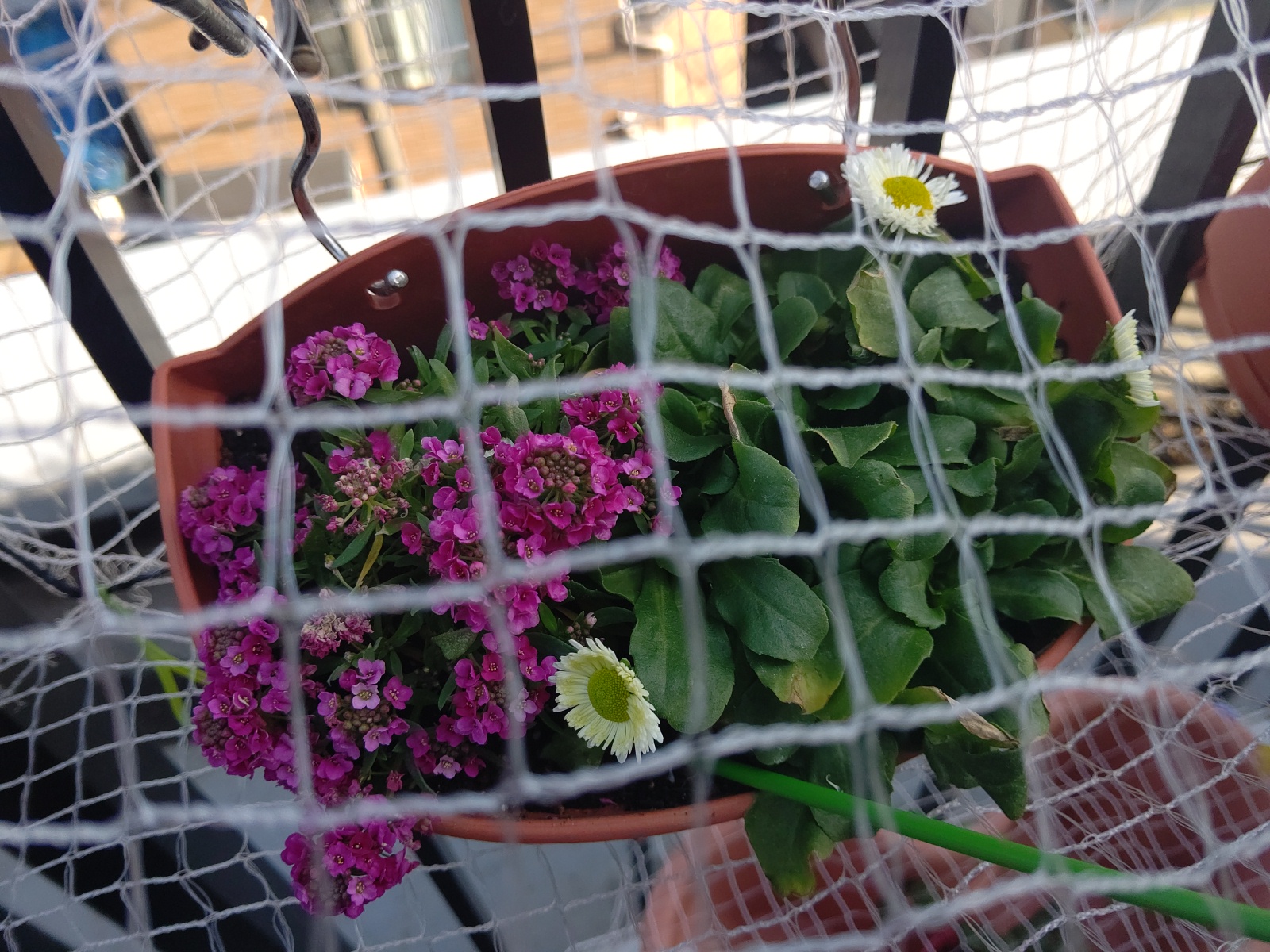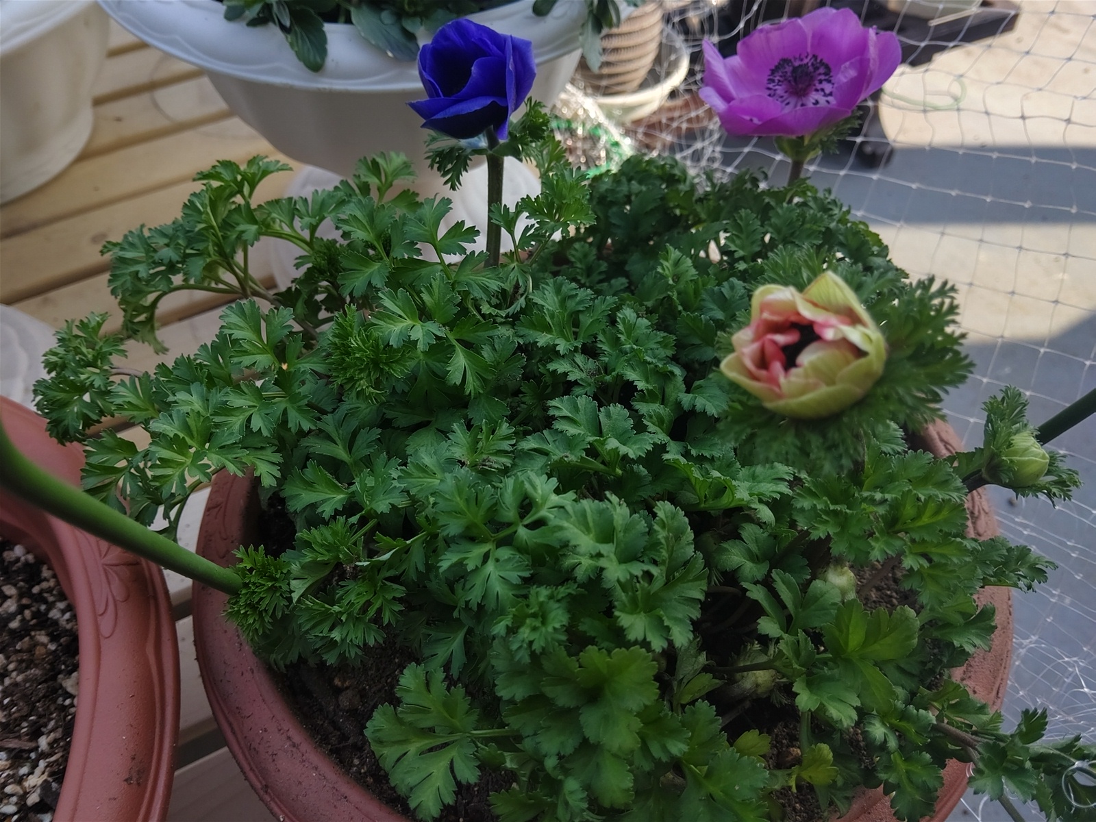 なんと、ネットの隙間からパンジーを少しかじっていた!