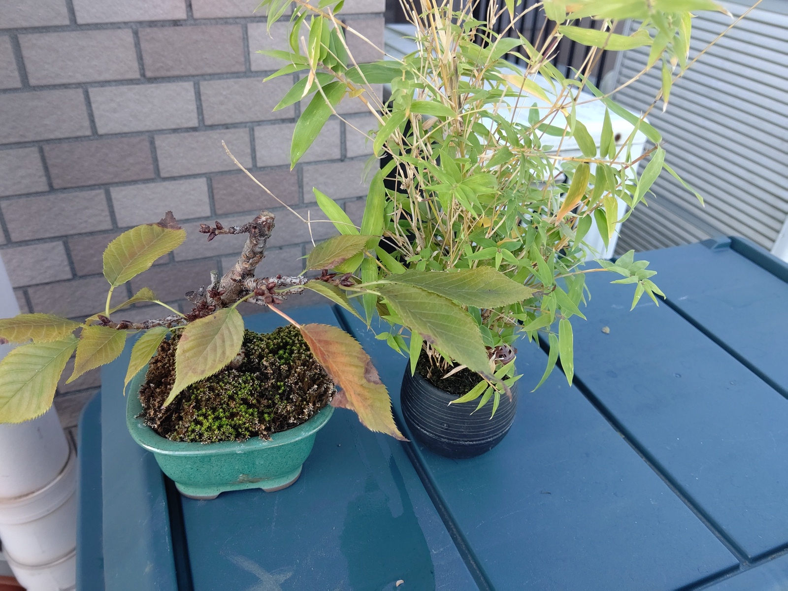 ミニ盆栽 左:桜 右:笹