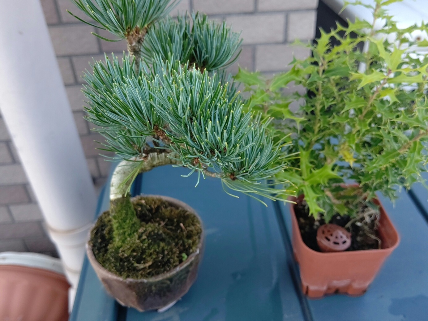 ミニ盆栽 左:五葉松 右:ミニヒイラギ