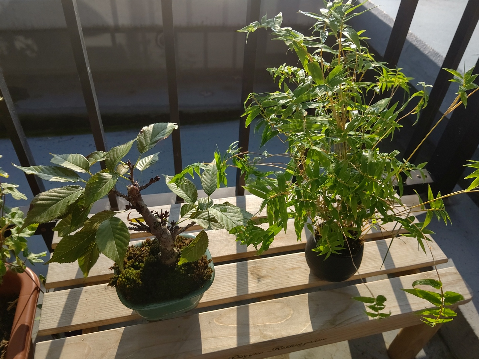 ミニ盆栽、桜(左)と笹です。