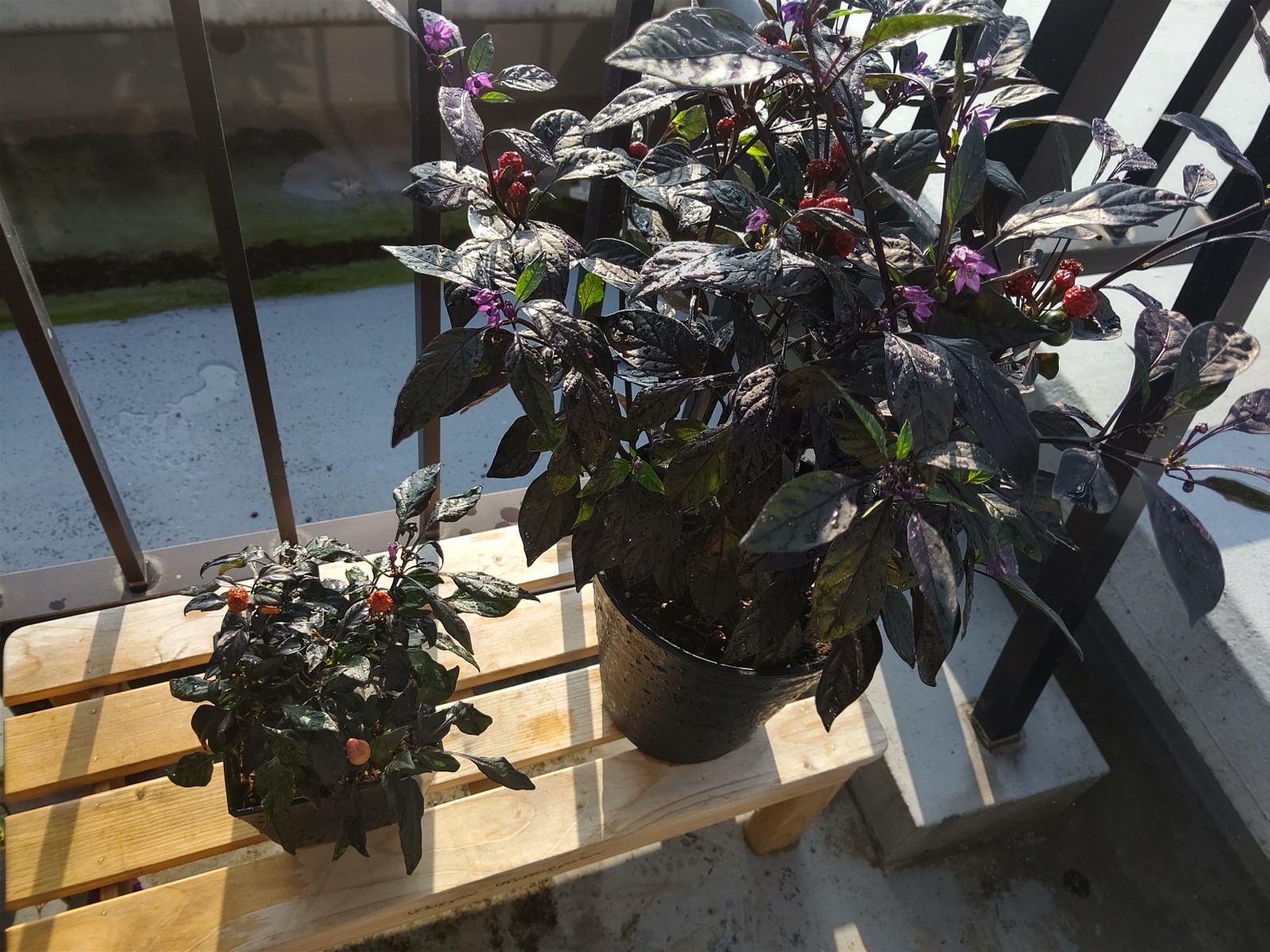 観賞用トウガラシ、コンガ(左)とブラックパールです。