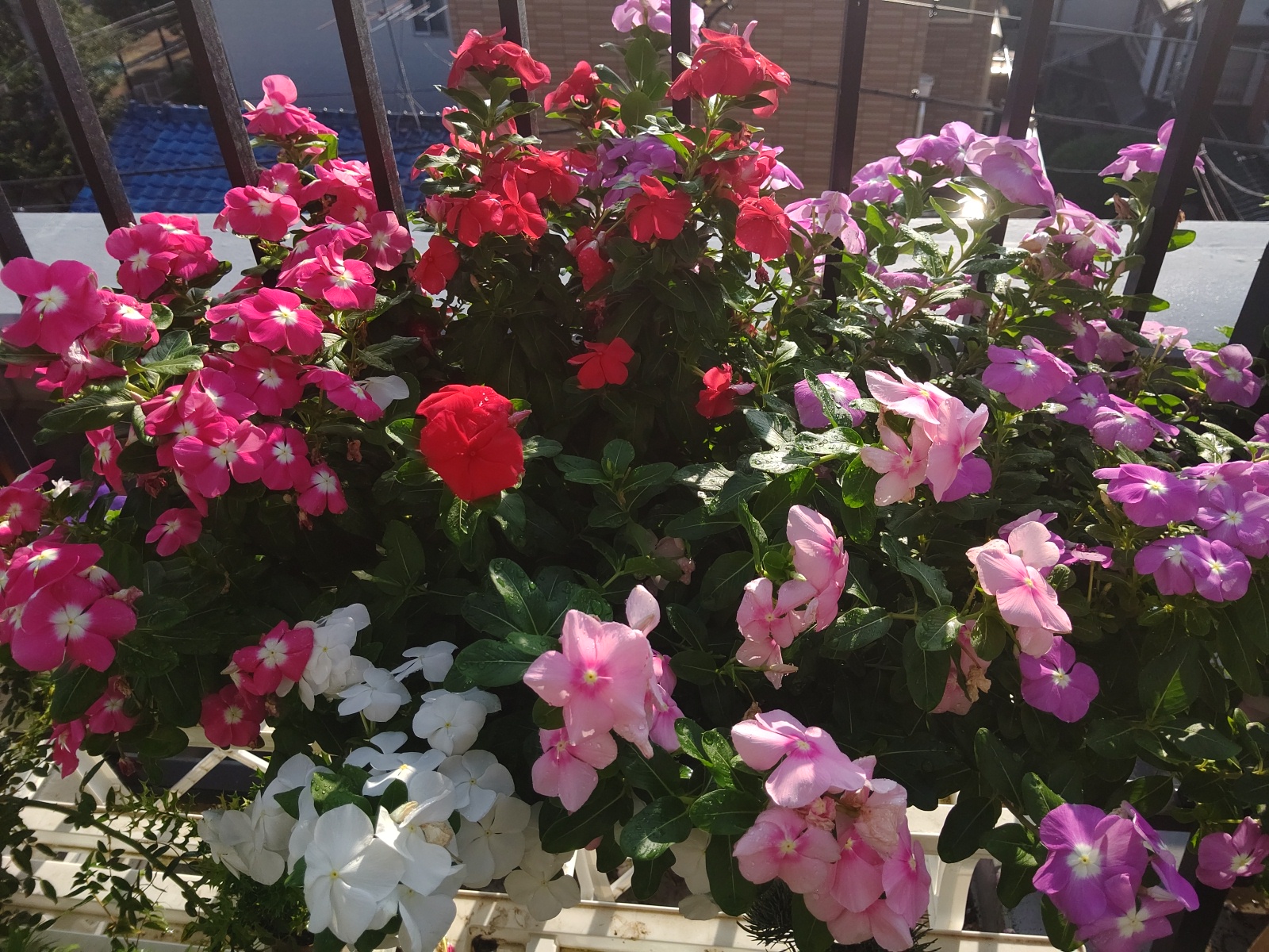 こちらも爆咲き、ニチニチソウです。